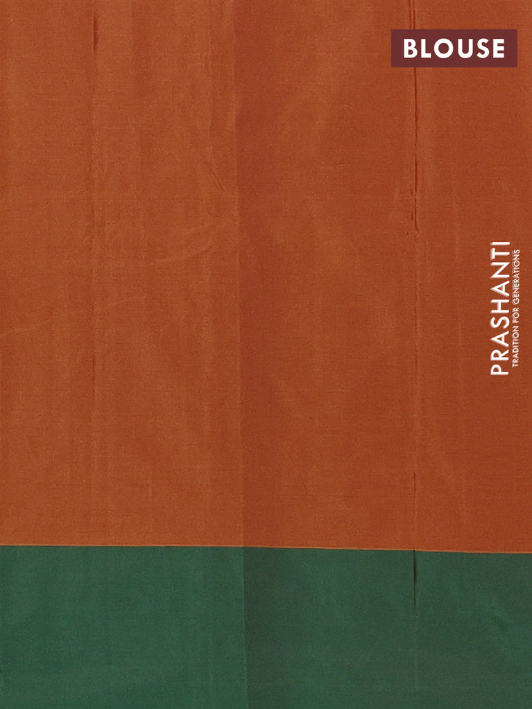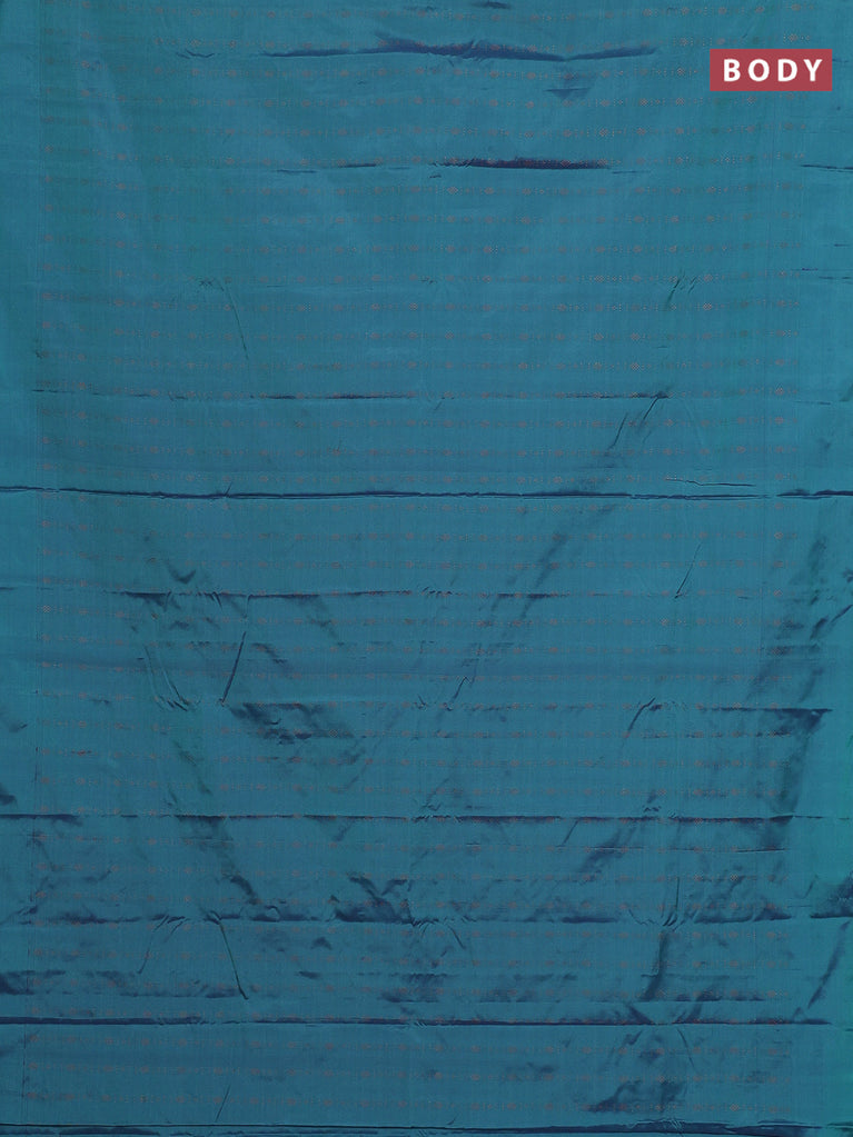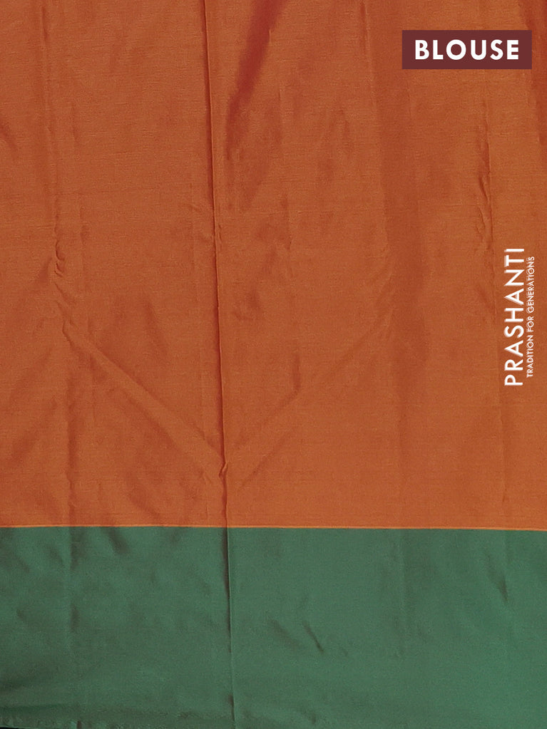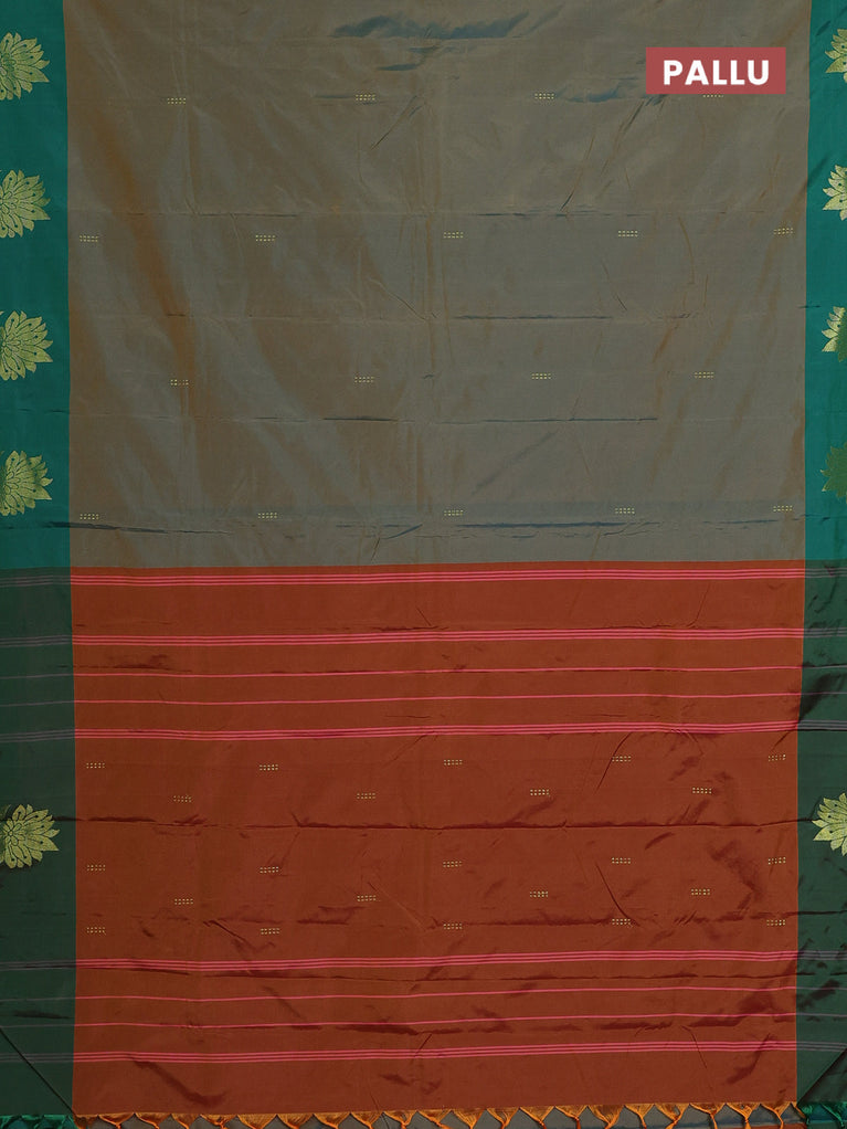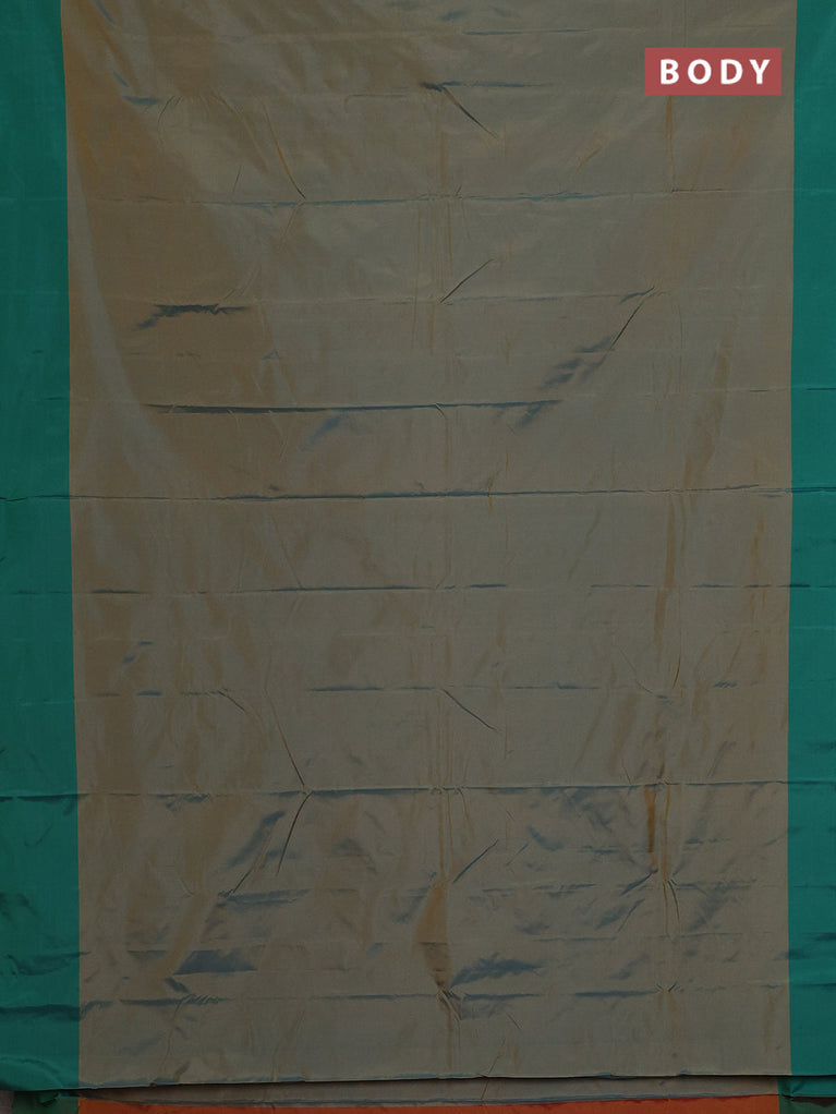 Arani semi silk saree dual shade of teal green with allover copper zari weaves in borderless style