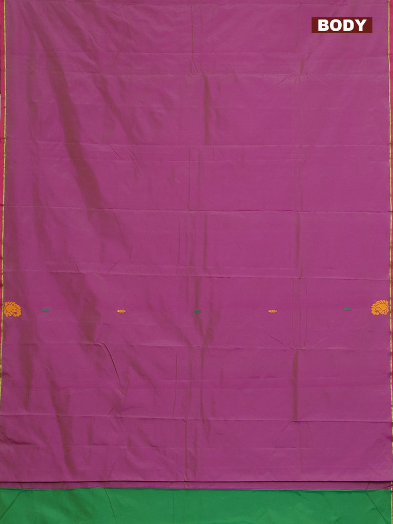 Arani semi silk saree dual shade of violet and dual shade of green with thread woven buttas and piping border