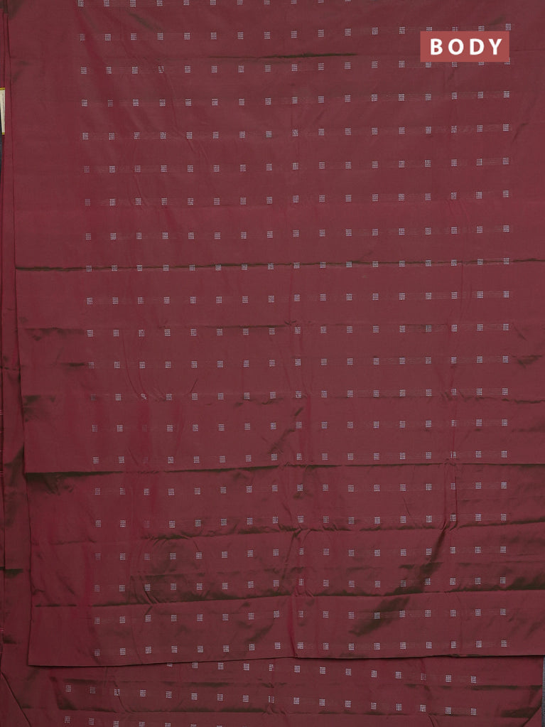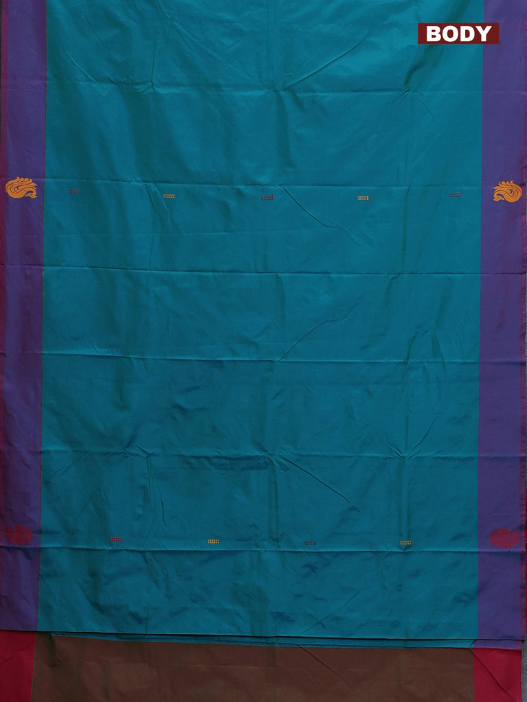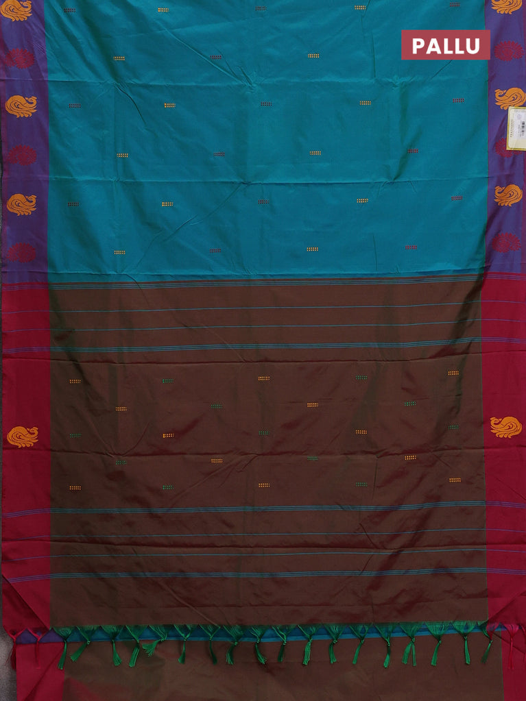 Arani semi silk saree dual shade of teal bluish green and dual shade of maroon with thread woven buttas and piping border