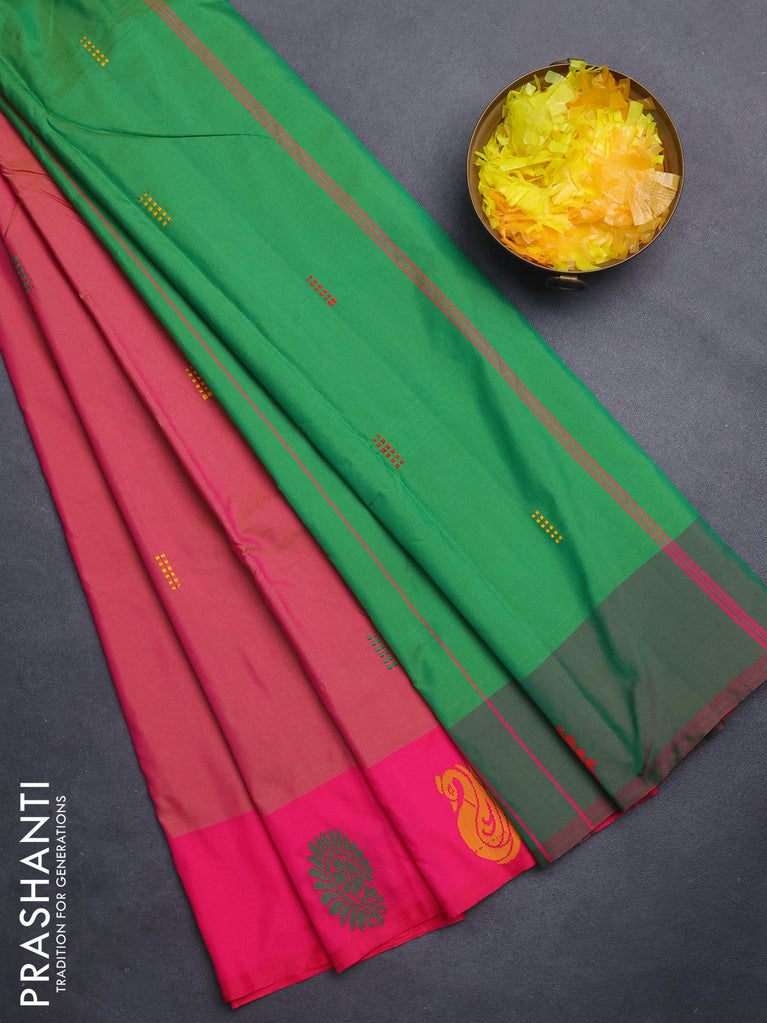 Arani semi silk saree dual shade of sap green and green with thread woven buttas and thread woven butta border