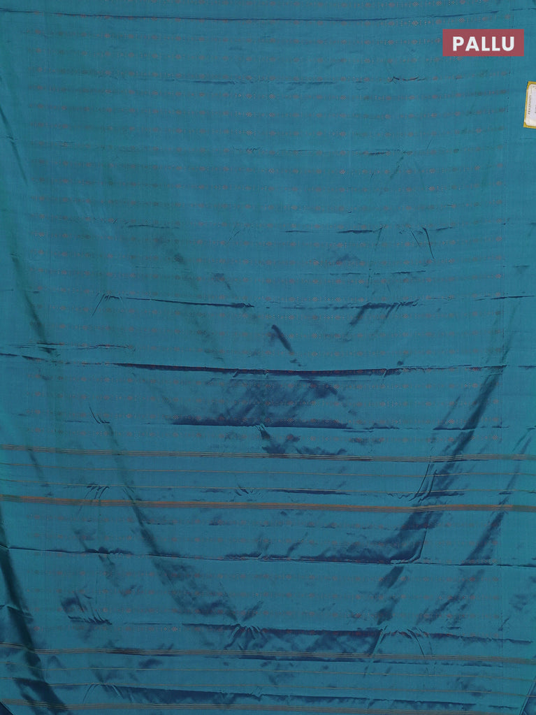 Arani semi silk saree dual shade of teal and green with zari woven buttas and zari woven butta border