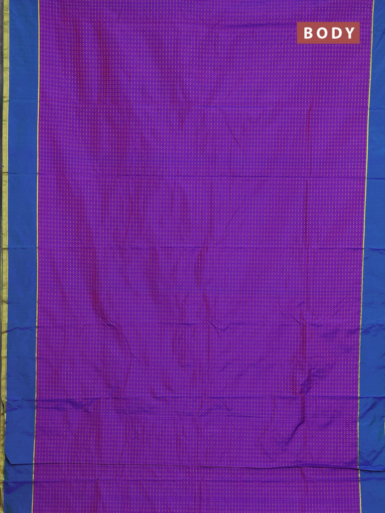 Arani semi silk saree dual shade of purple with silver zari woven buttas in borderless style