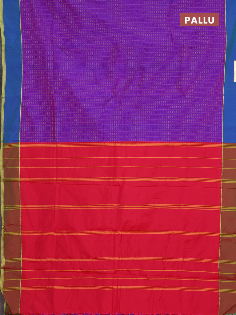 Arani semi silk saree dual shade of purple and red with allover thread weaves and rettapet zari woven border`