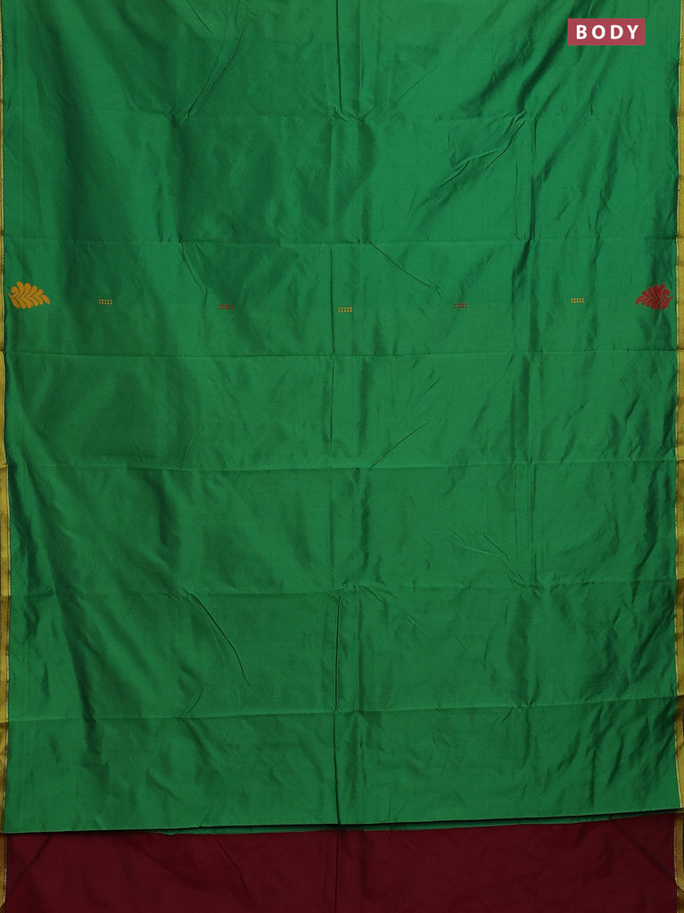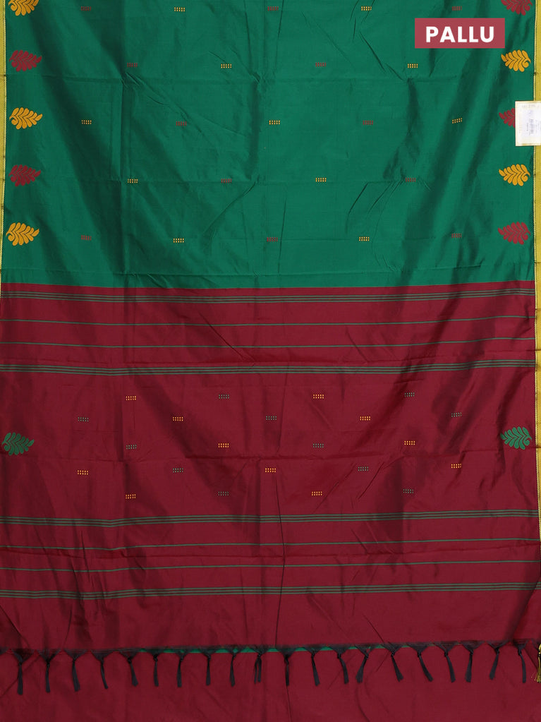 Arani semi silk saree green and maroon with thread woven buttas and piping border