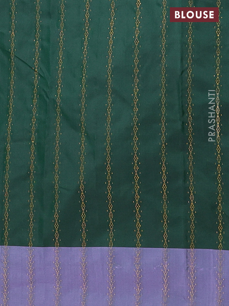 Arani semi silk saree green and dual shade of lavender with allover zari weaves and zari woven border