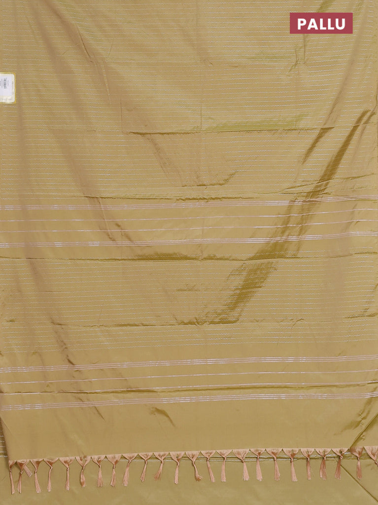 Arani semi silk saree elaichi green with allover copper zari weaves in borderless style