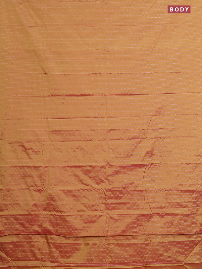 Arani semi silk saree dual shade of yellowish pink with allover silver zari weaves in borderless style