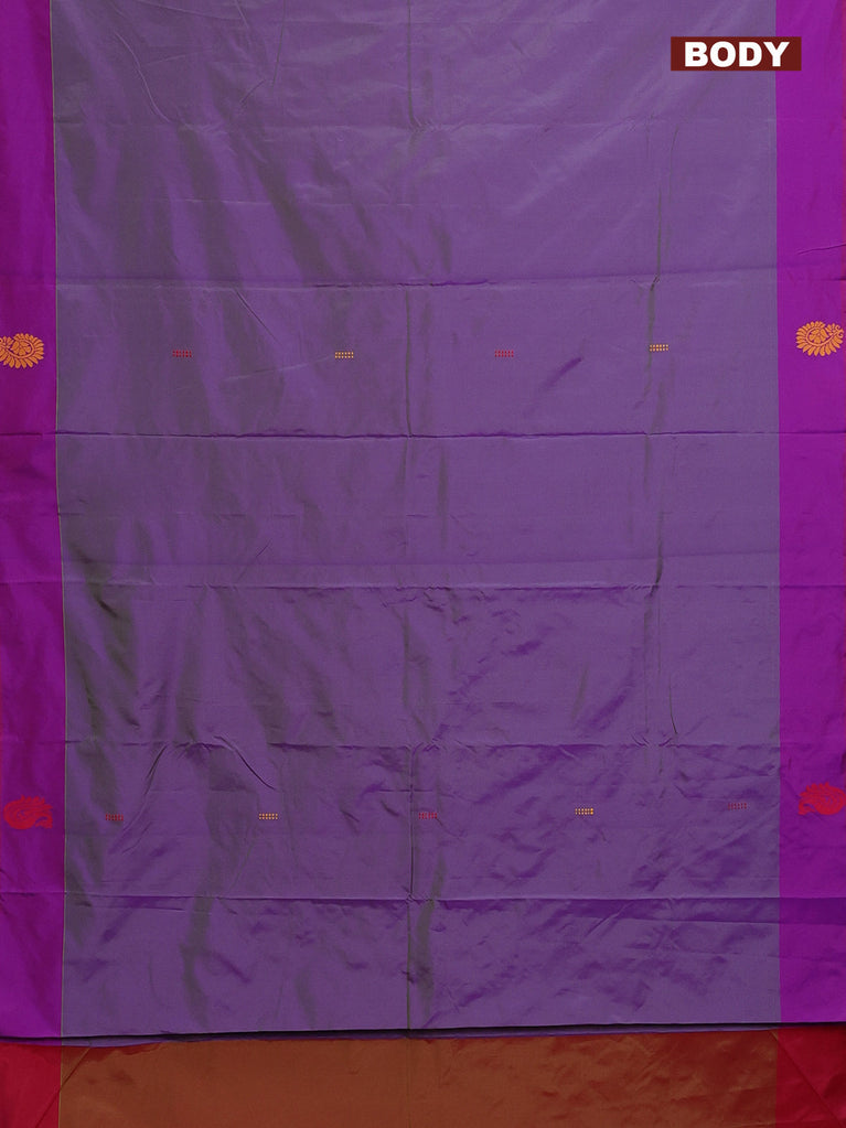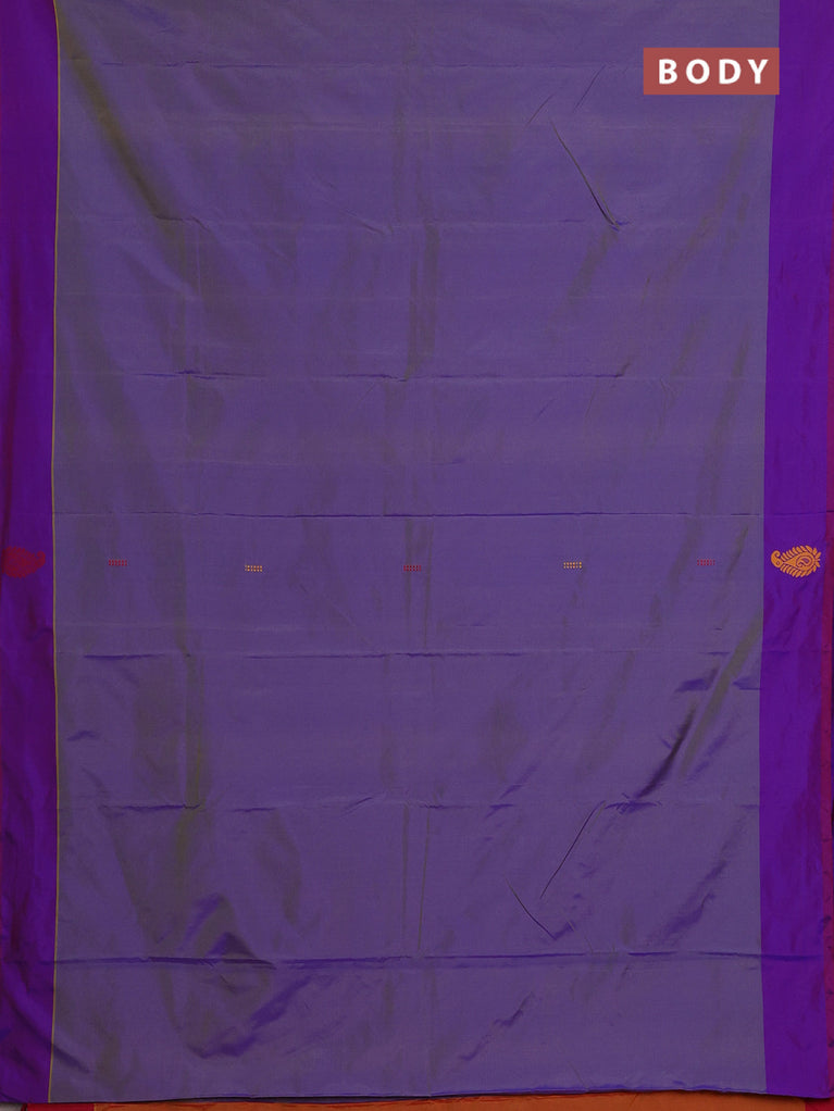 Arani semi silk saree dual shade of violet and dual shade of orange with thread woven buttas and thread woven butta border