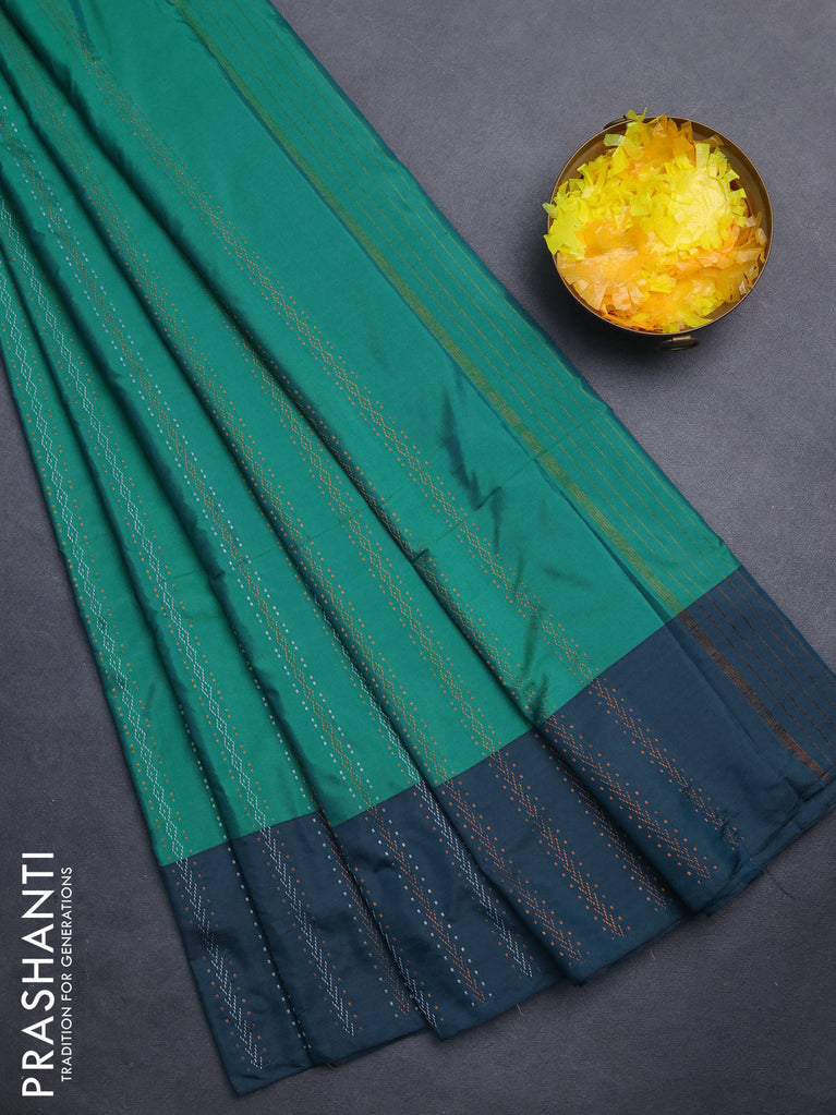 Arani semi silk saree green and peacock blue with allover silver & copper zari weaves and zari woven border