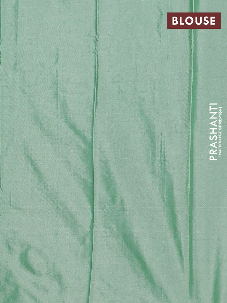 Arani semi silk saree elaichi green with allover silver zari weaves in borderless style
