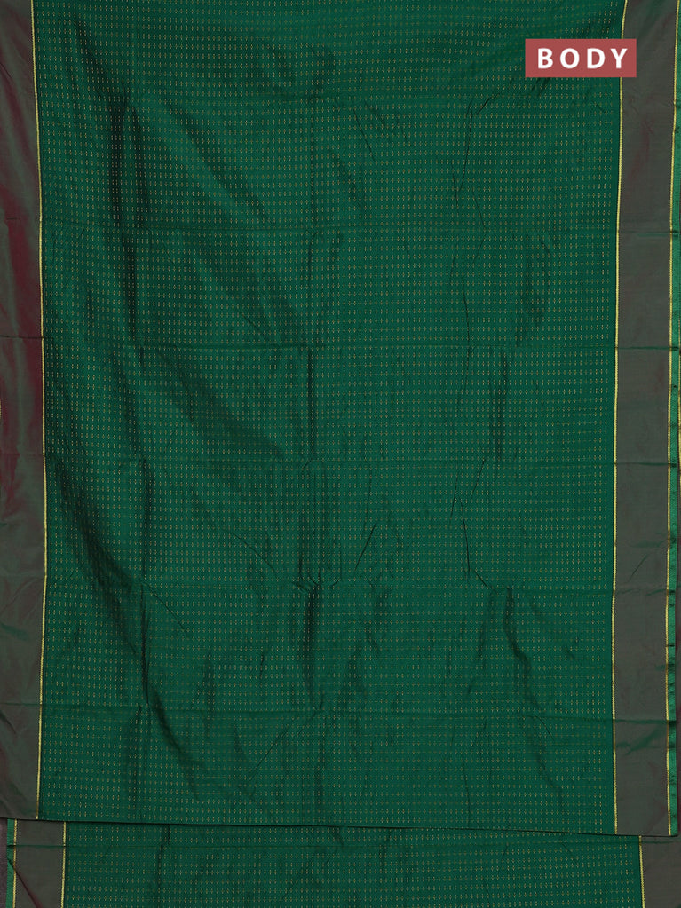 Arani semi silk saree green and maroon with allover thread weaves and rettapet zari woven border`