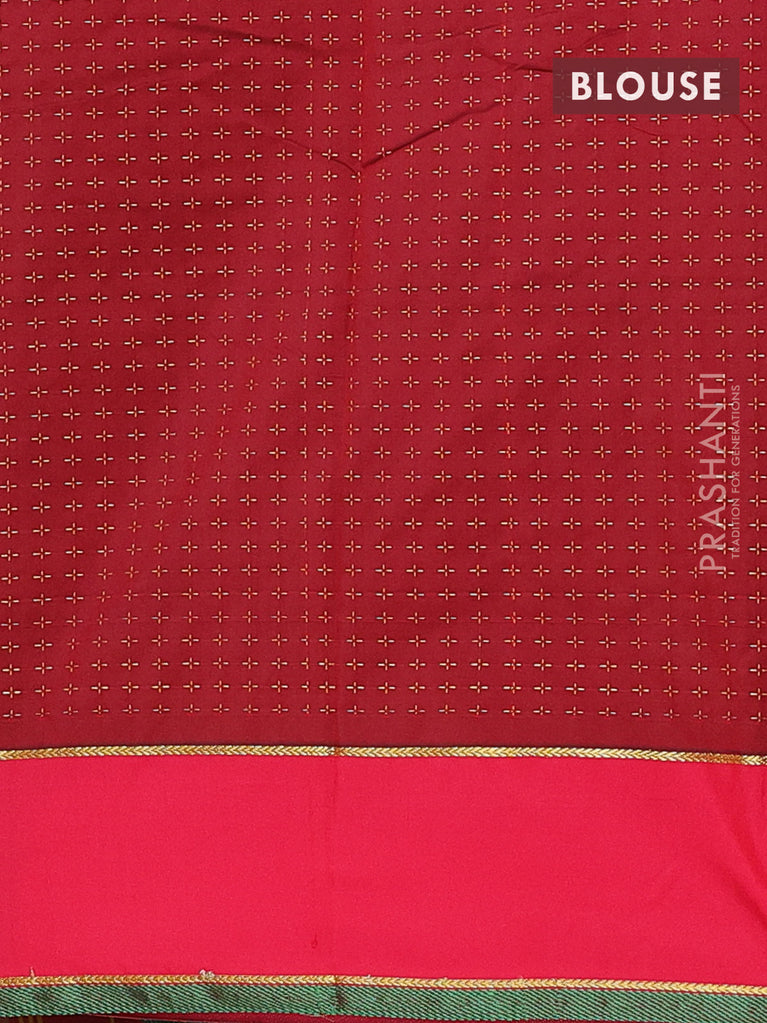 Arani semi silk saree green and dark magenat pink with thread woven buttas and thread woven butta border