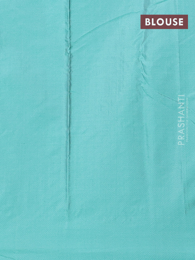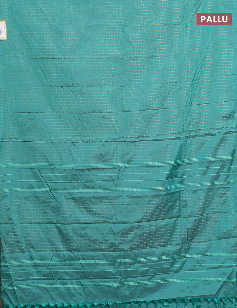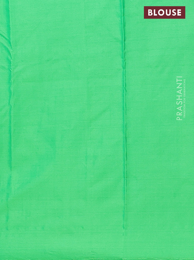 Arani semi silk saree green with allover silver zari weaves in borderless style