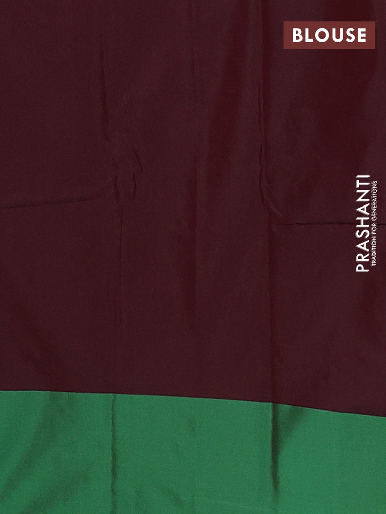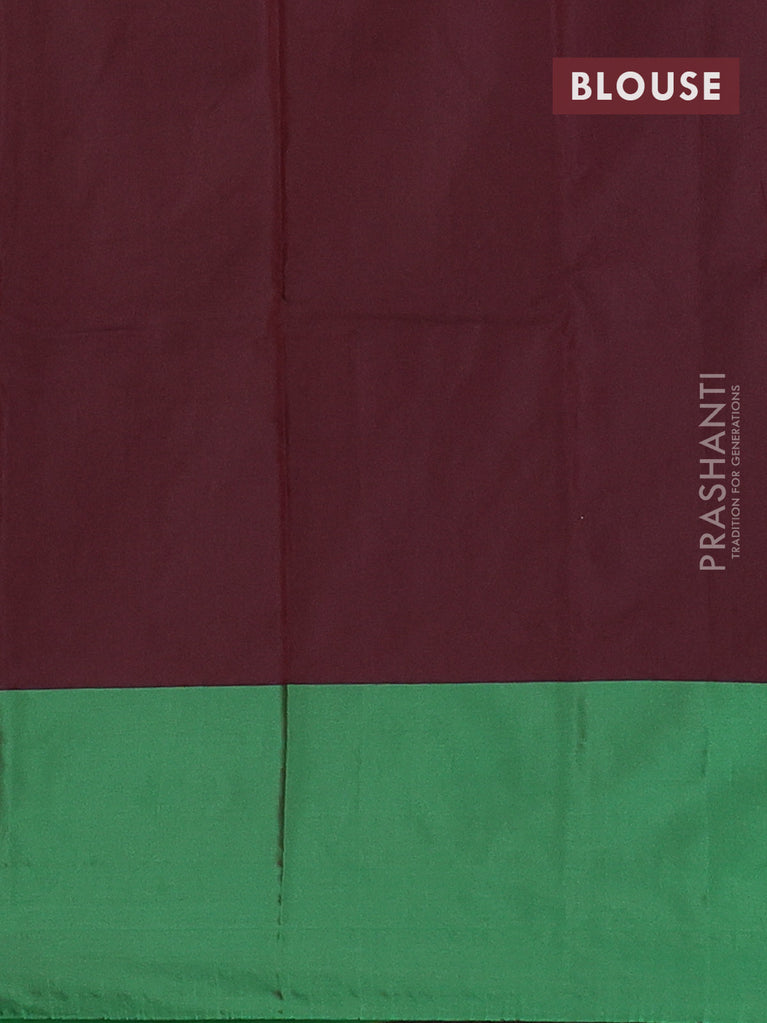 Arani semi silk saree green with copper zari woven buttas in borderless style