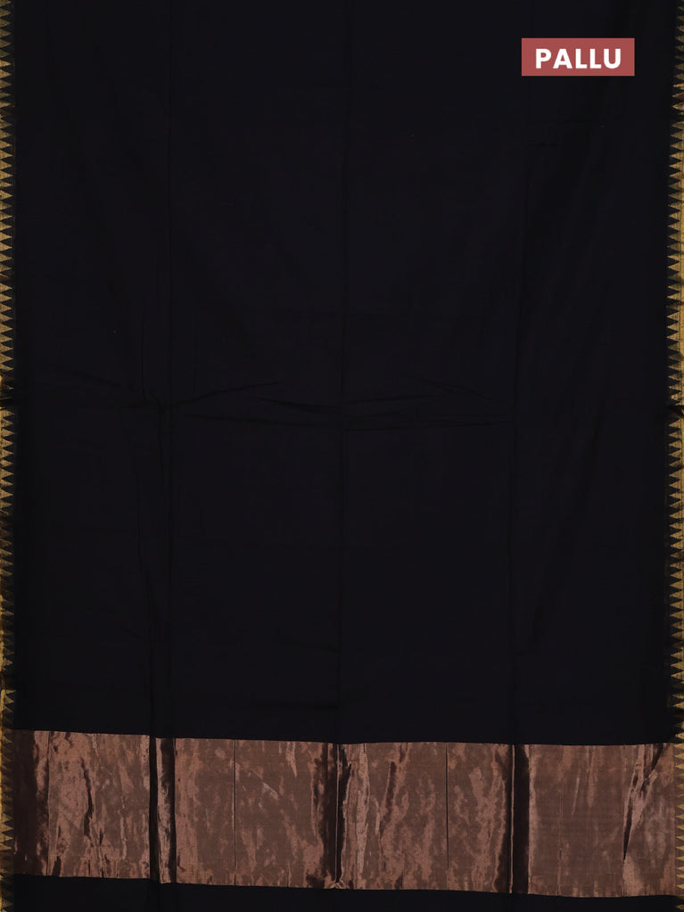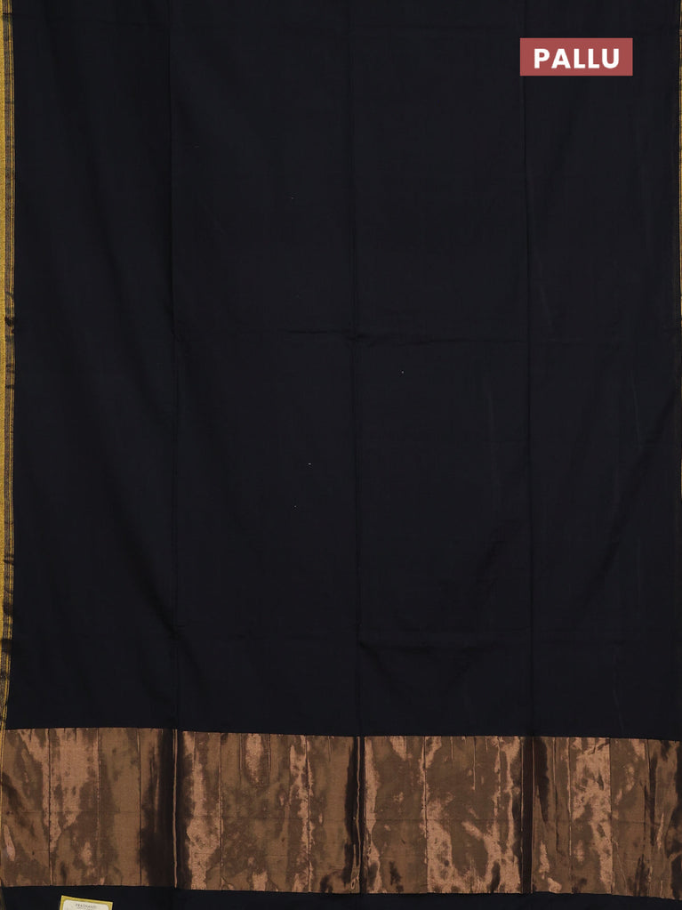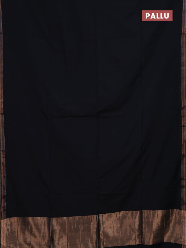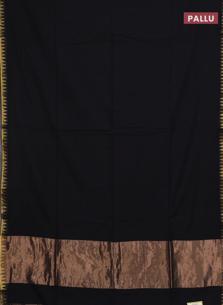 Bengal soft cotton saree black and bluish grey with plain body and zari woven border