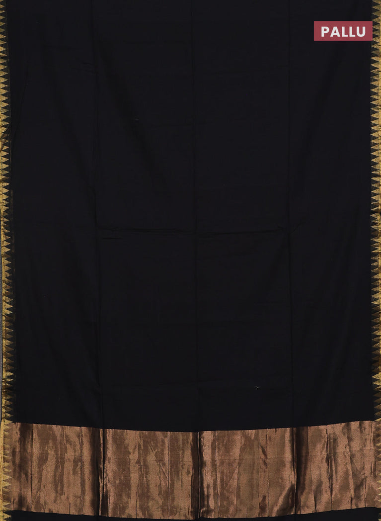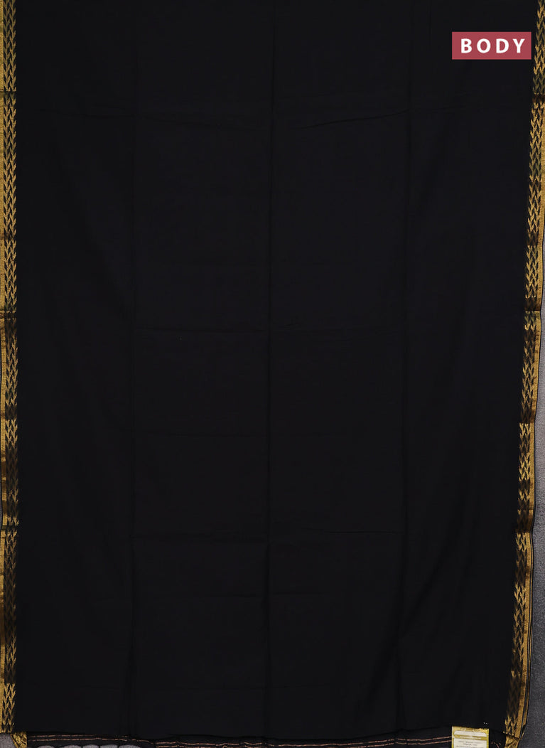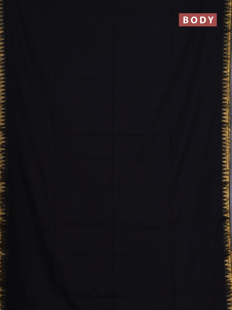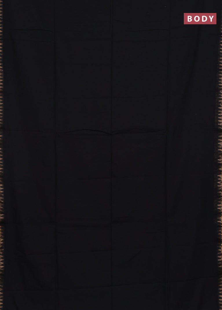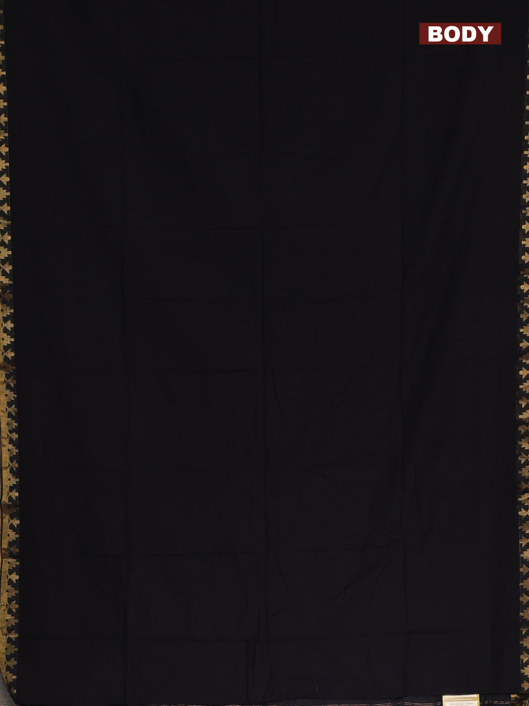 Bengal soft cotton saree black and green with plain body and zari woven border