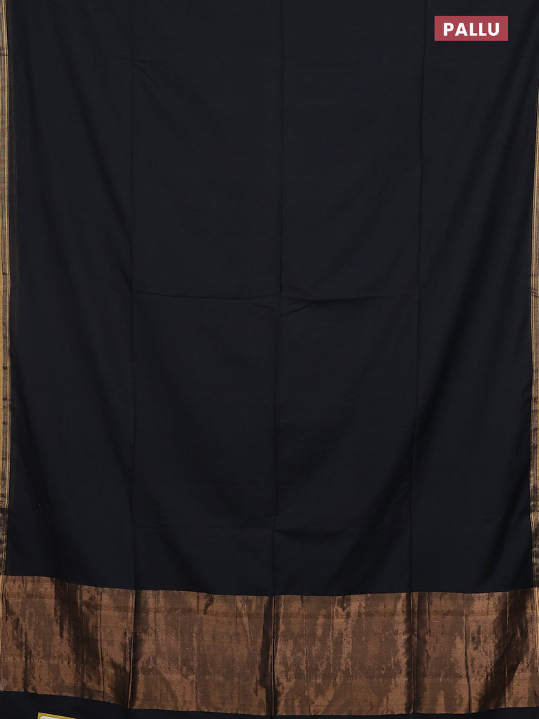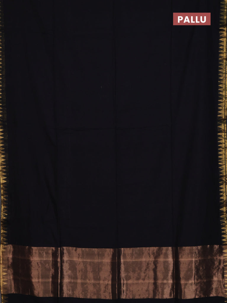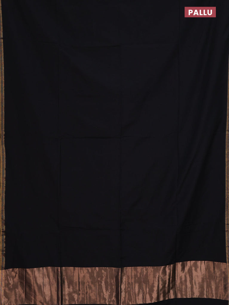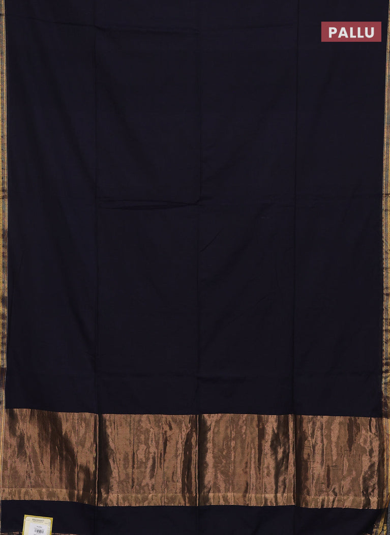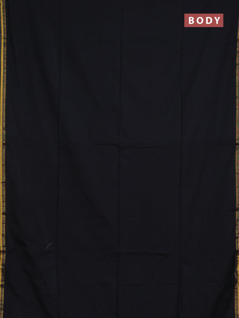 Bengal soft cotton saree black and blue with plain body and zari woven border