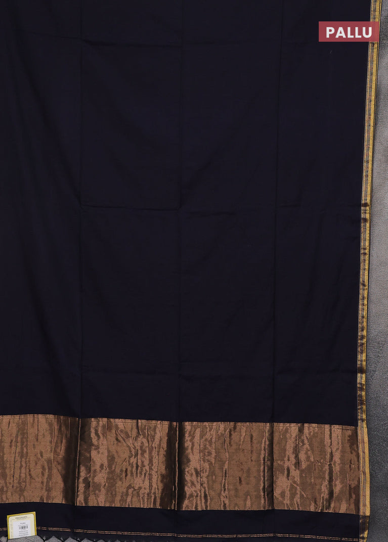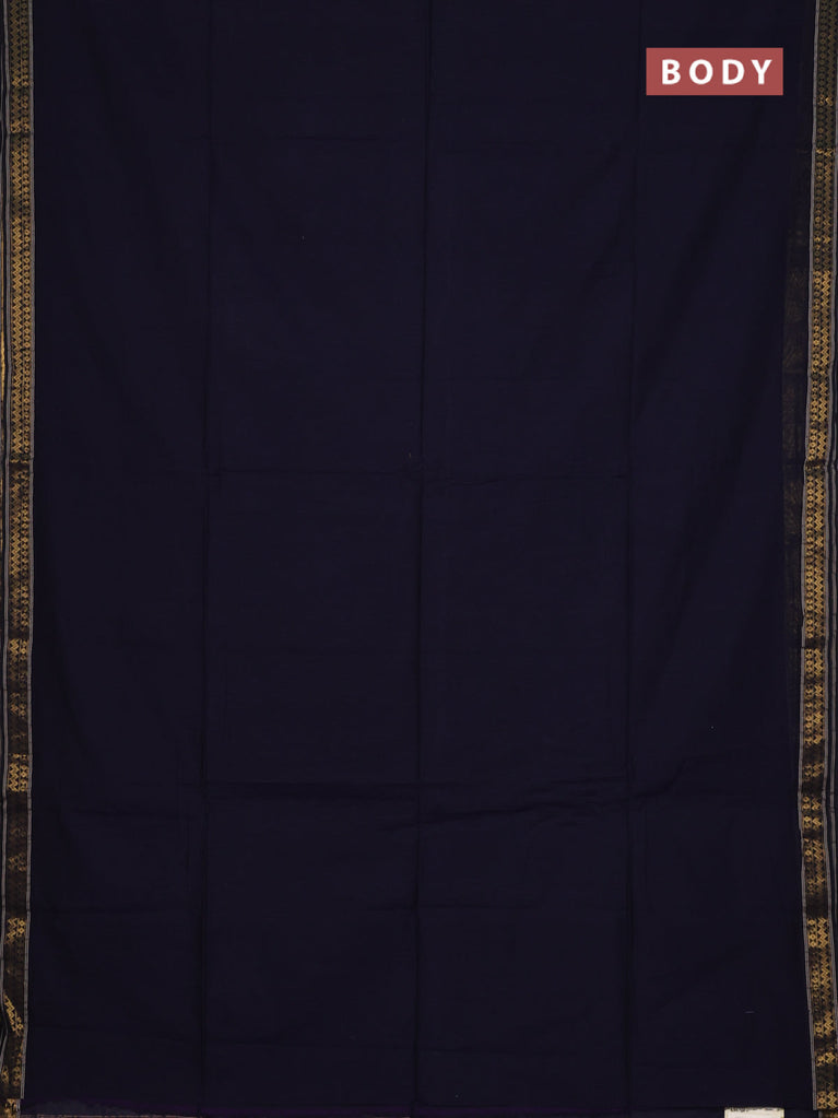 Bengal soft cotton saree navy blue with plain body and zari woven border