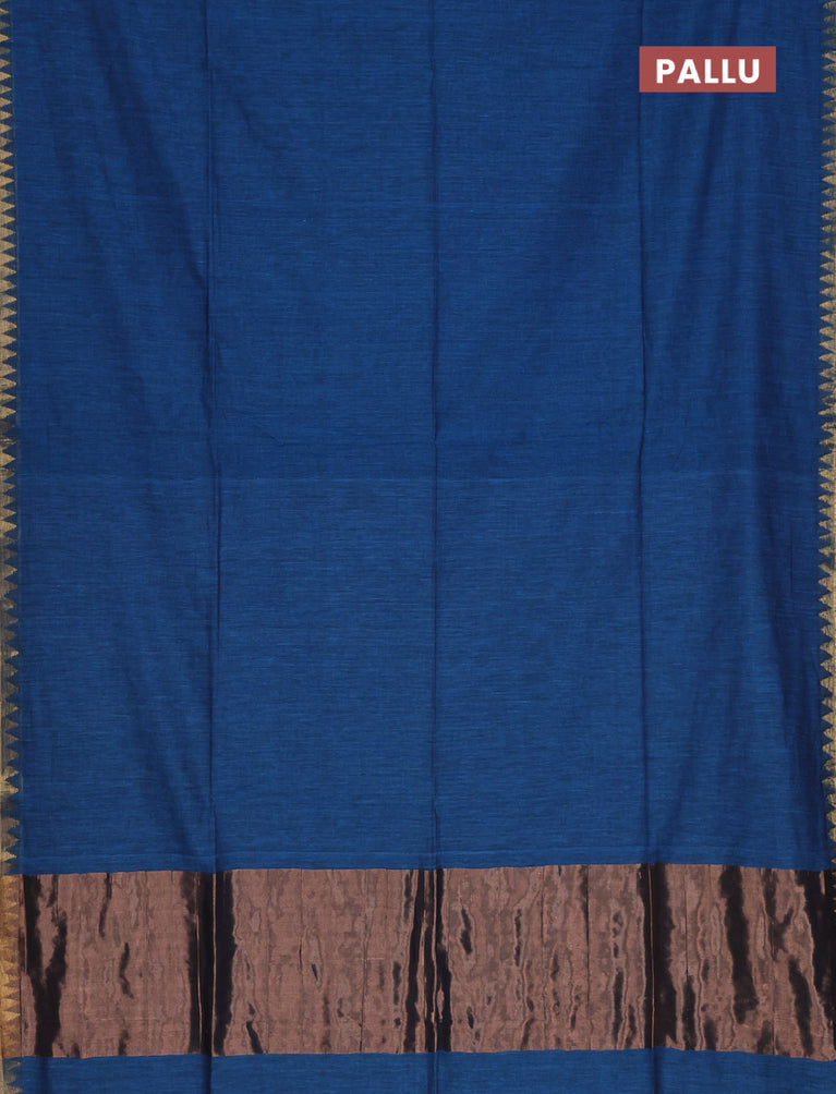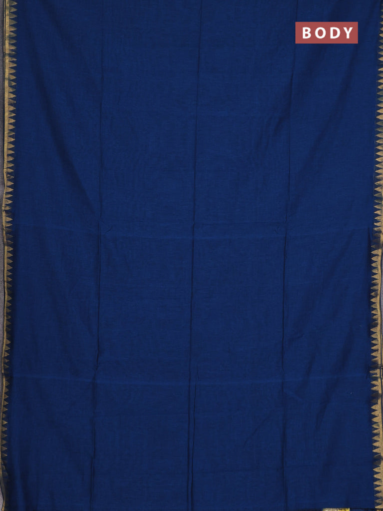 Bengal soft cotton saree cs blue with plain body and temple design zari woven border