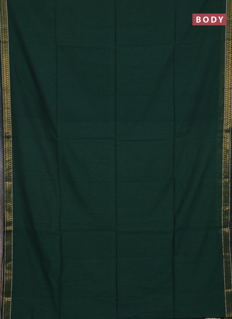 Bengal soft cotton saree green with plain body and zari woven piping border
