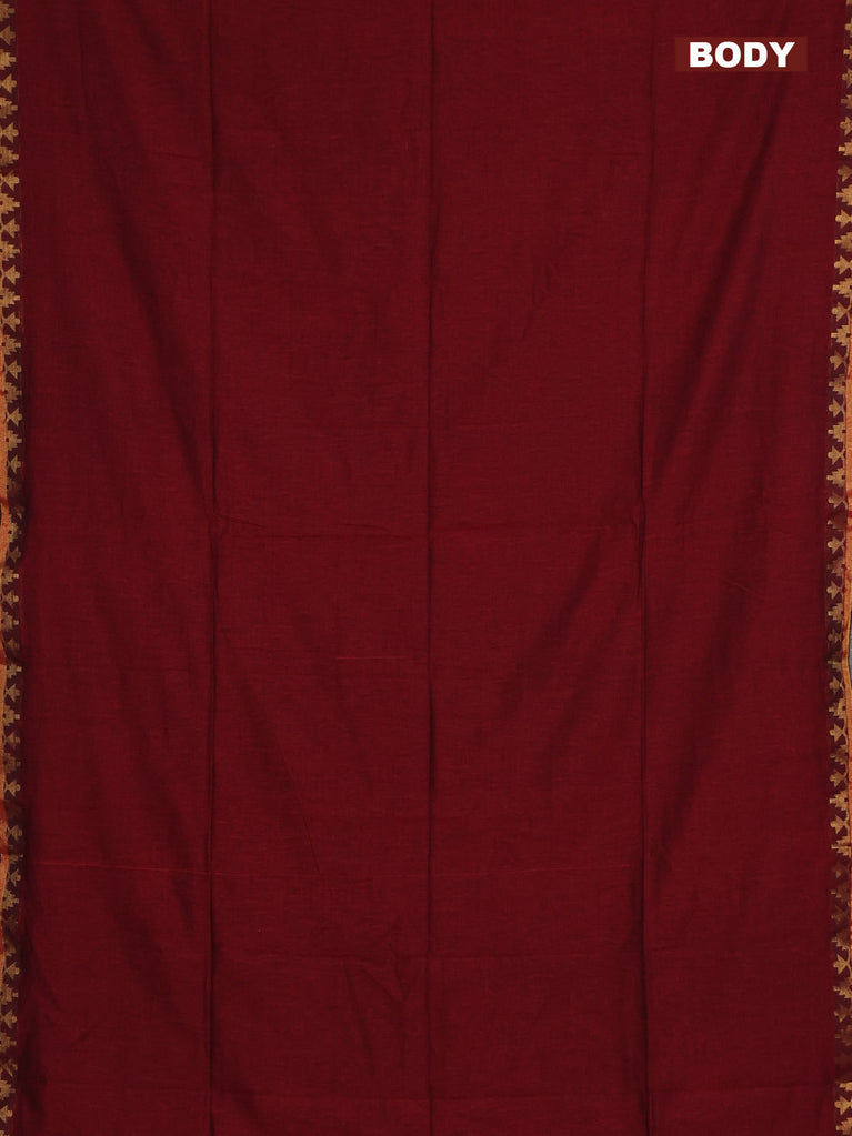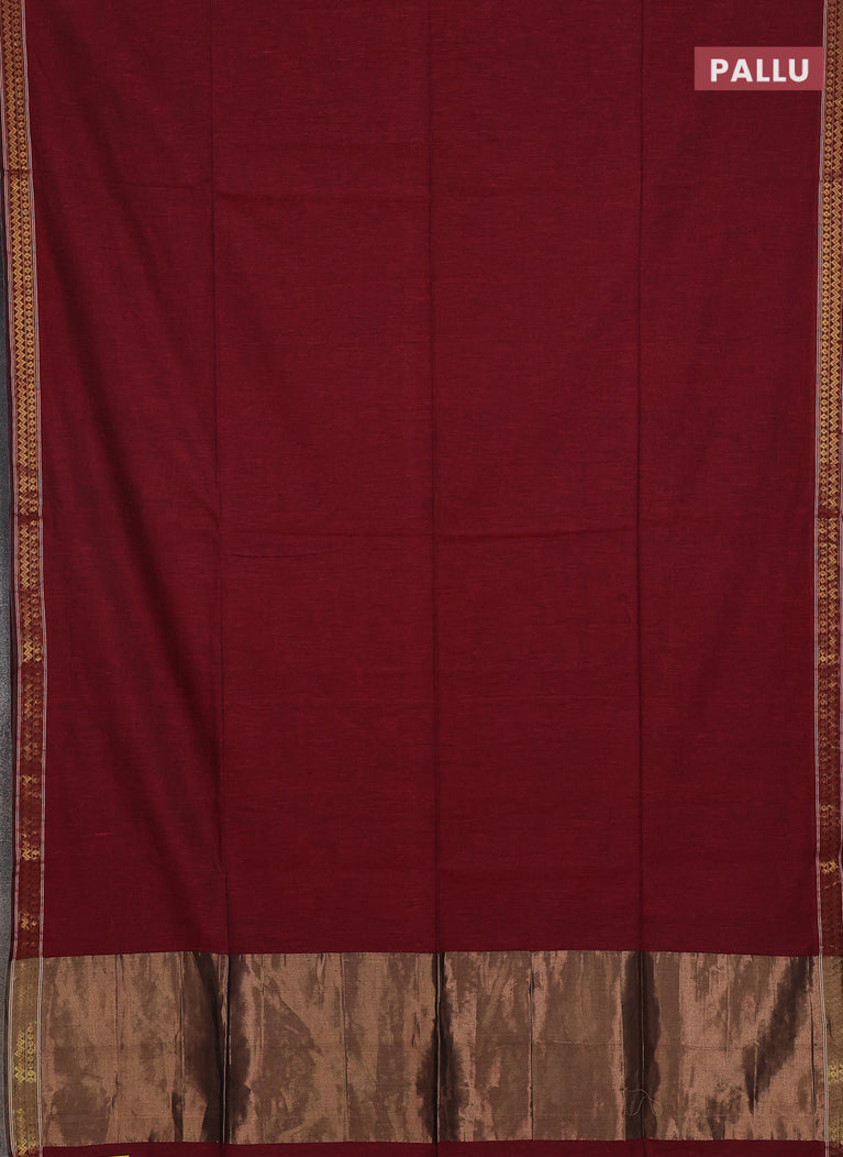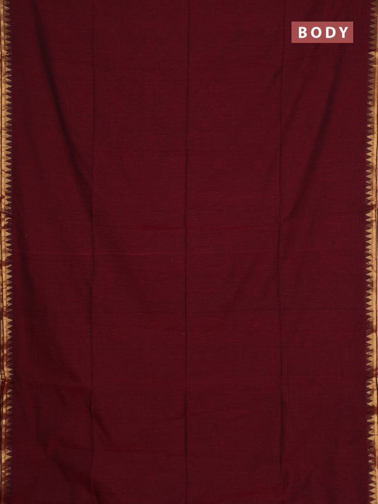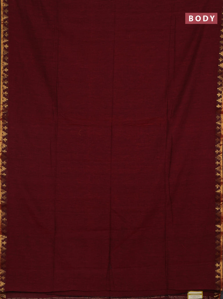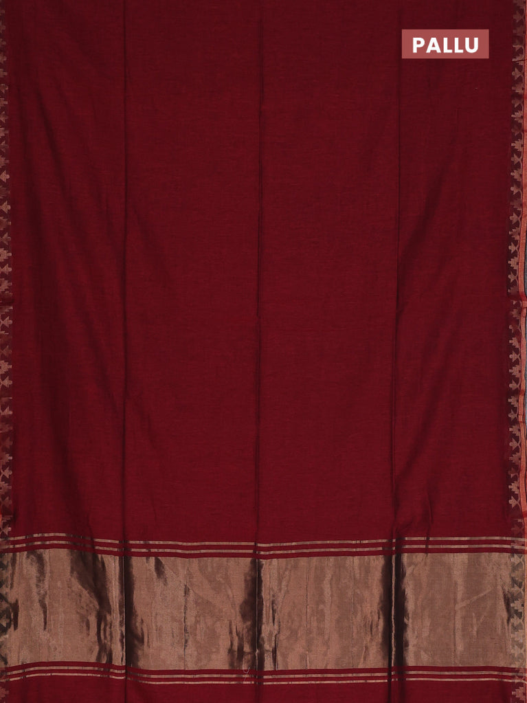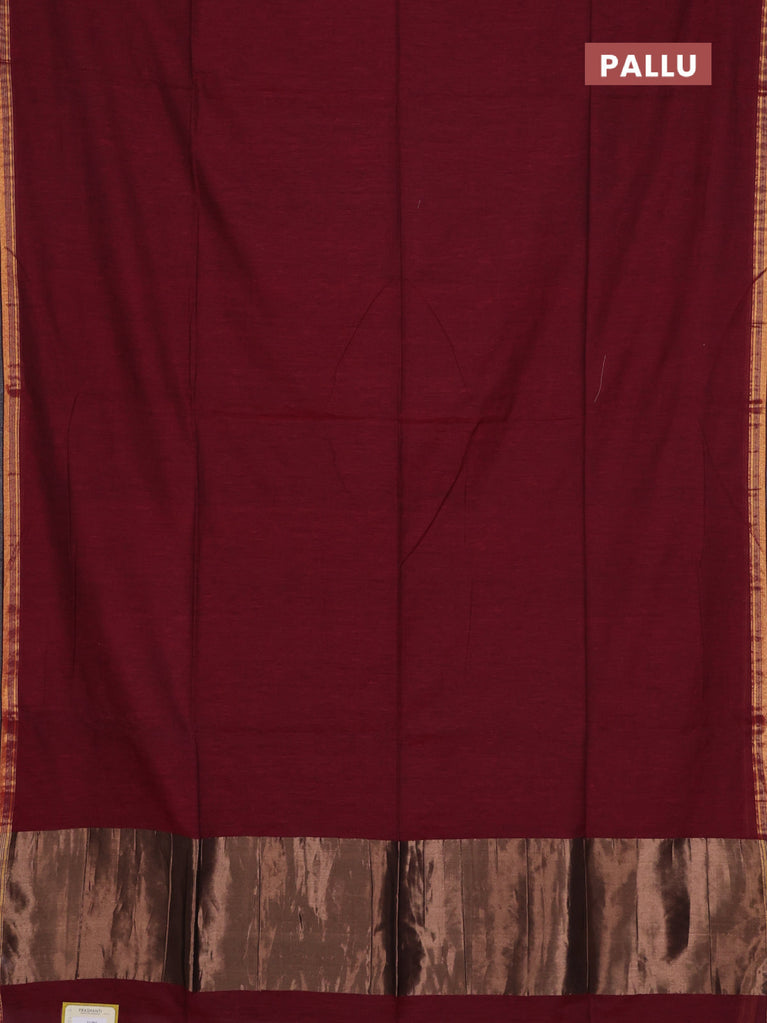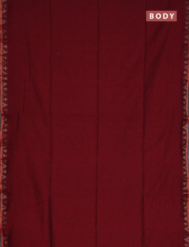 Bengal soft cotton saree maroon and blue with plain body and zari woven border