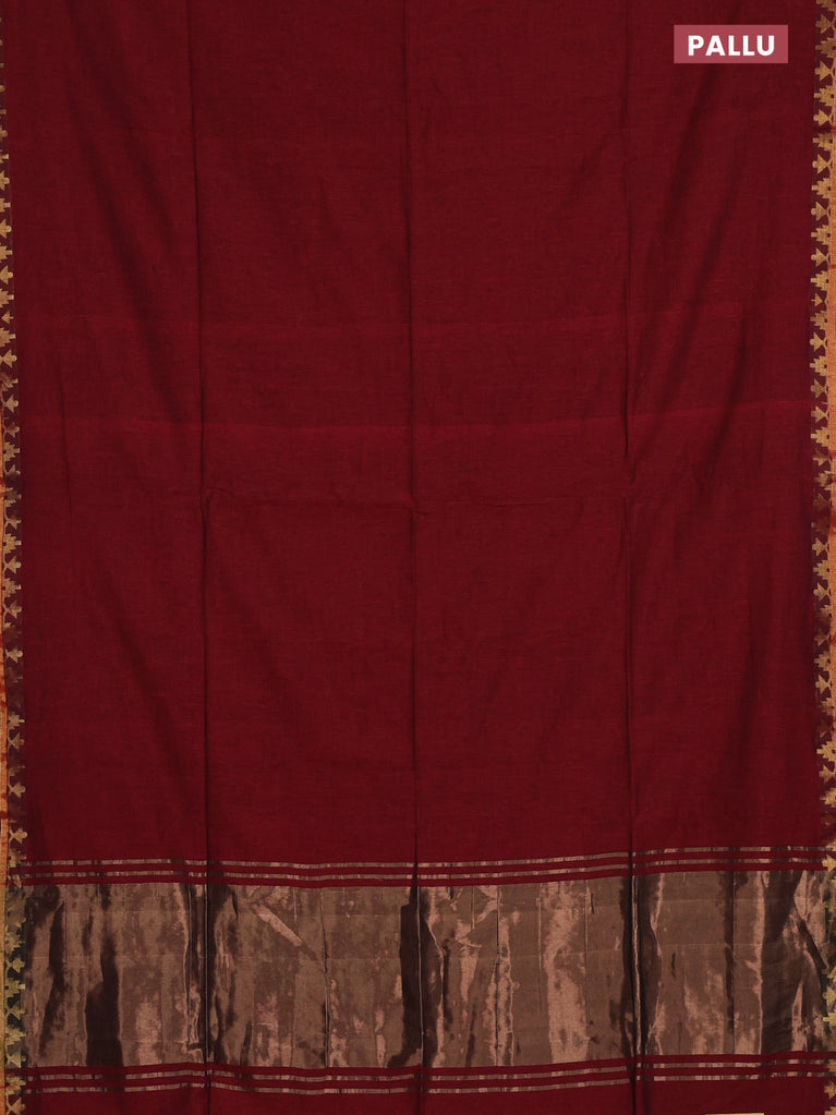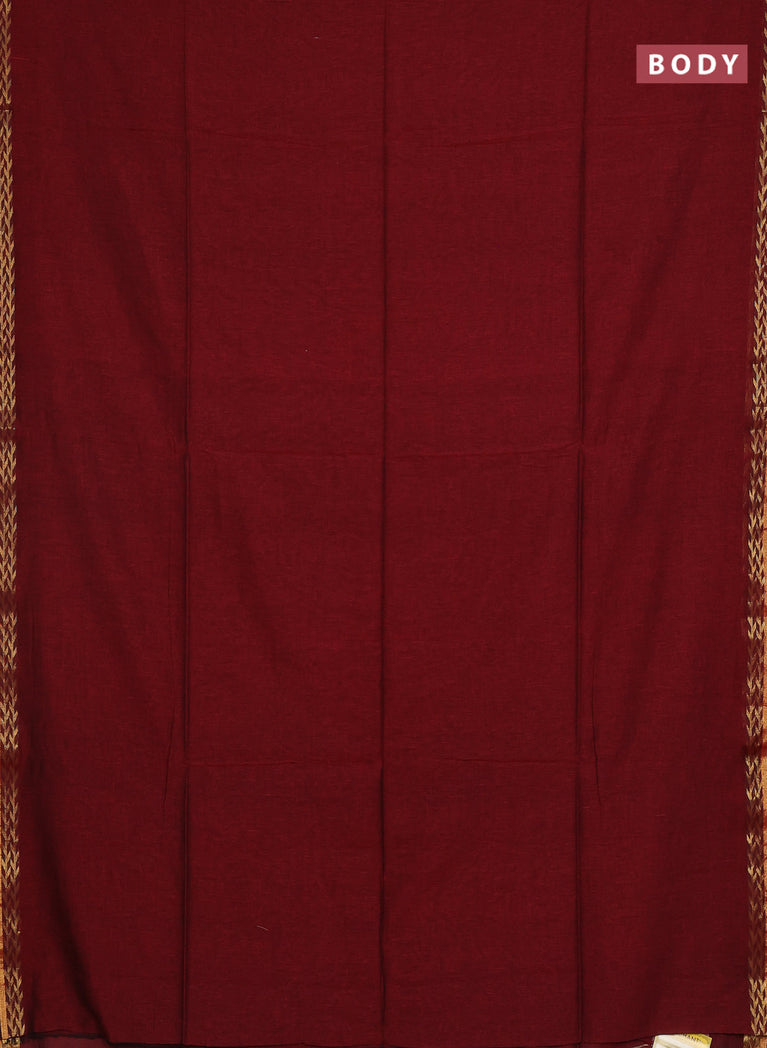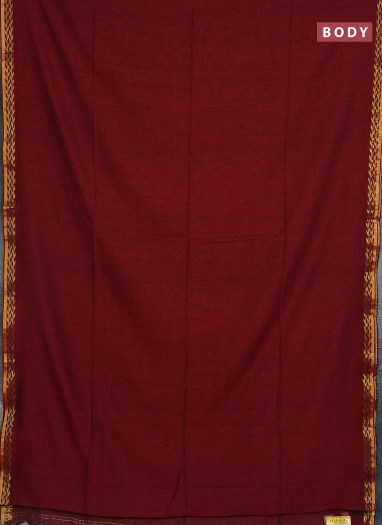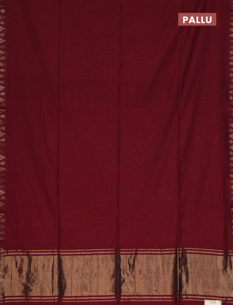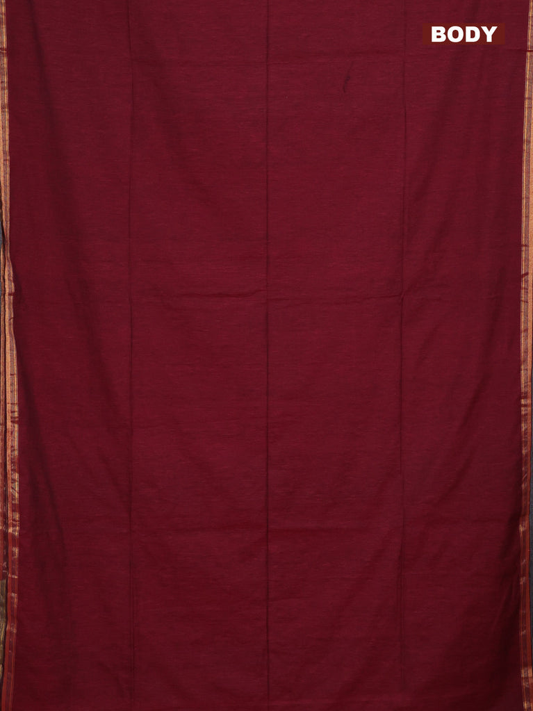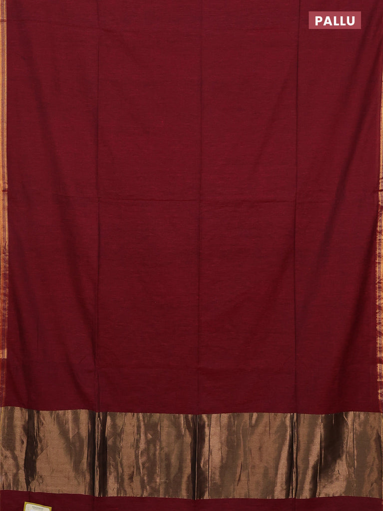 Bengal soft cotton saree maroon and blue with plain body and zari woven border