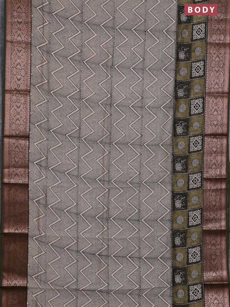 Chanderi silk cotton saree dark mustard and brown with allover zig zag prints and banarasi style border