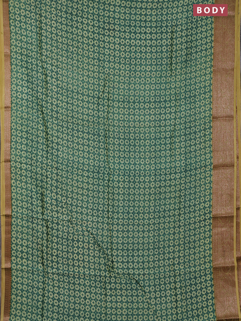 Chanderi silk cotton saree elaichi green with allover floral digital prints and woven border