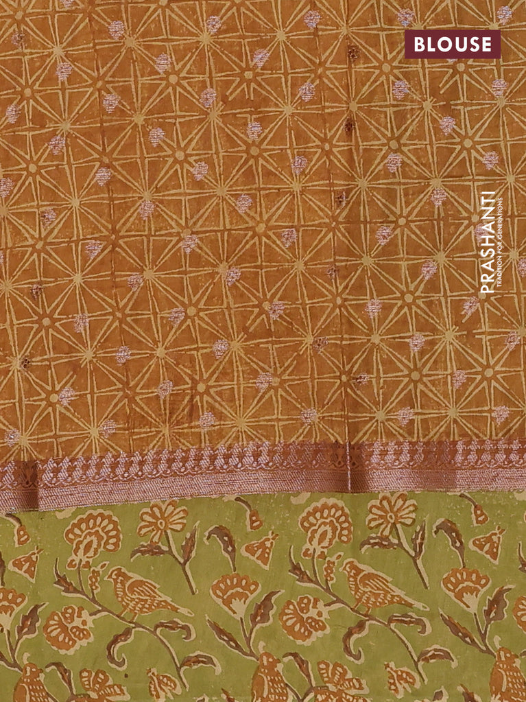 Chanderi silk cotton saree green and mustard green with allover prints and banarsi style border