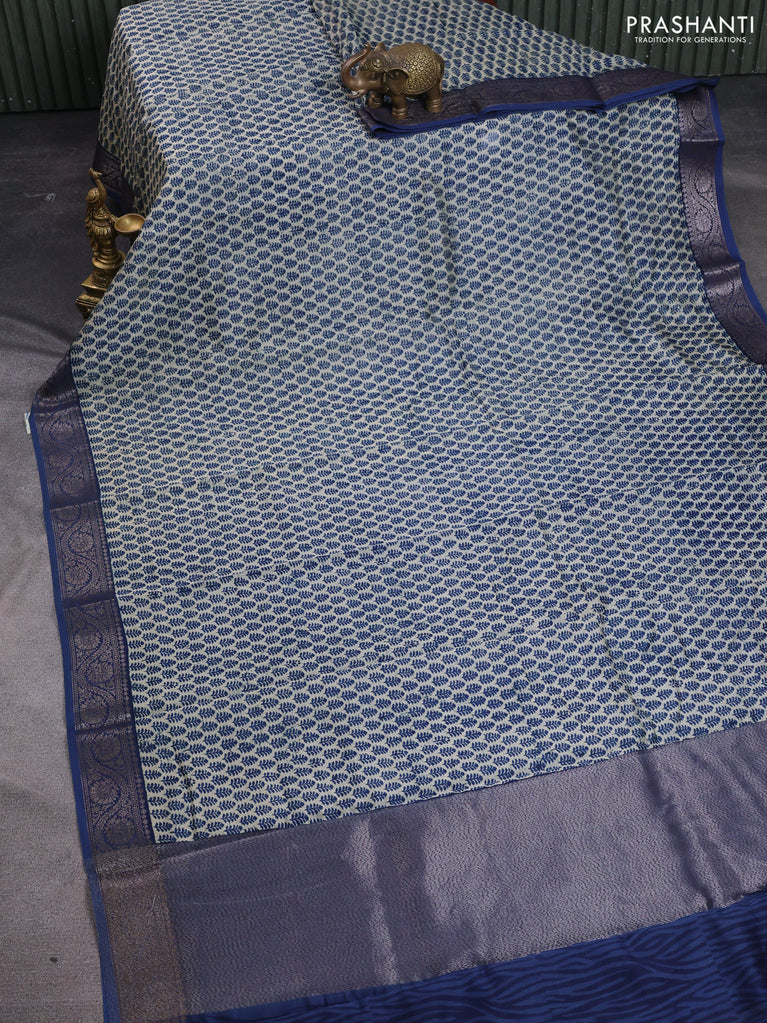 Chanderi silk cotton saree cream and dark blue with allover prints and banarasi style border