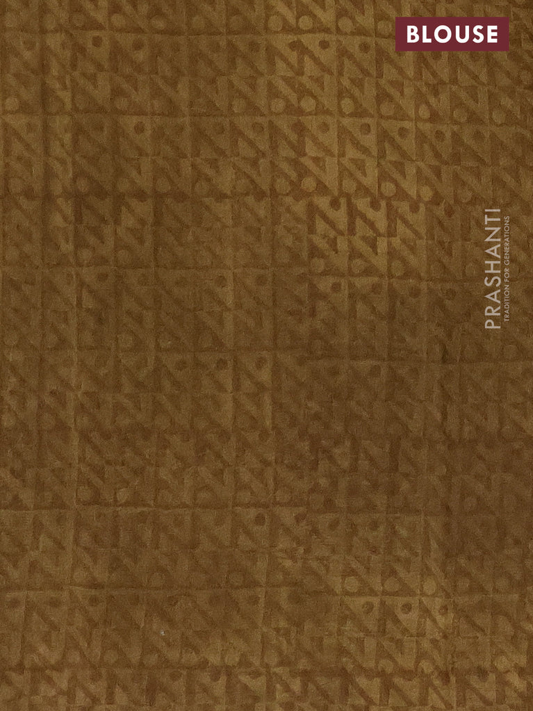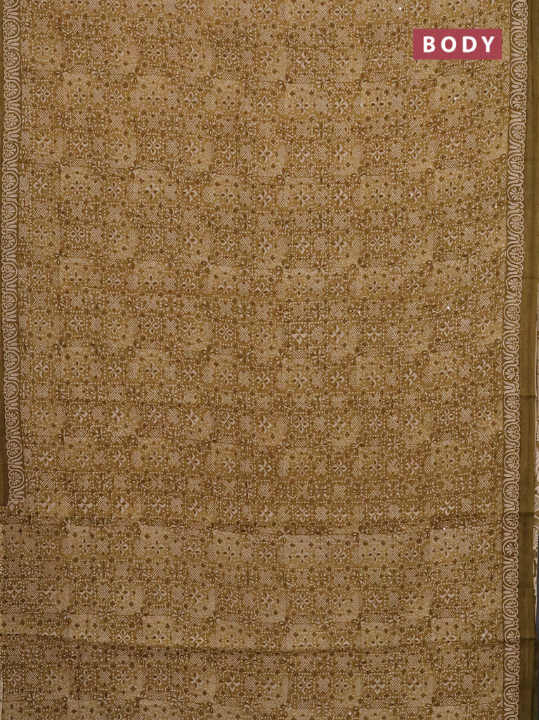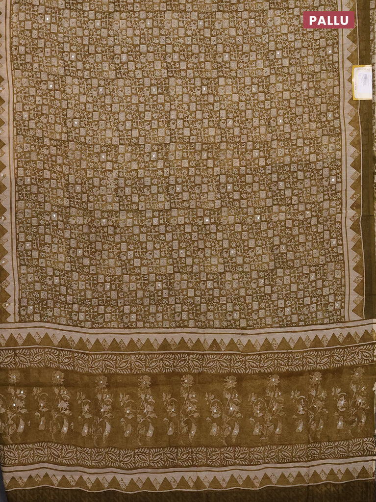 Chanderi silk cotton saree mustard green shade and beige with allover prints & mirror work and printed border
