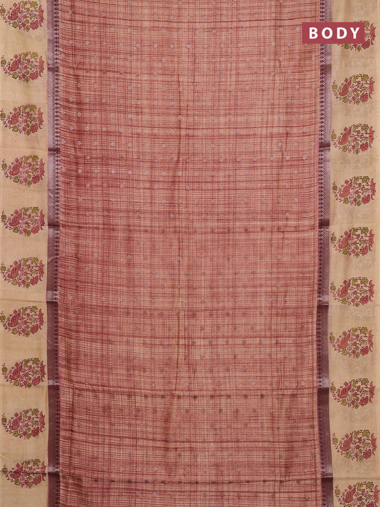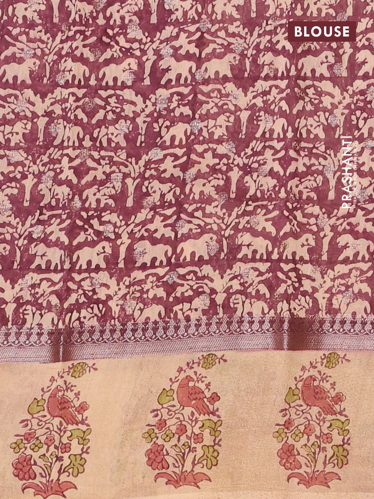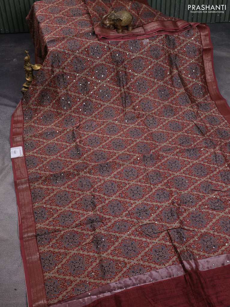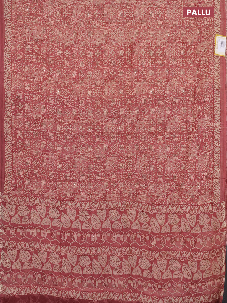 Chanderi silk cotton saree pastel maroon and beige with allover prints & mirror work and printed border