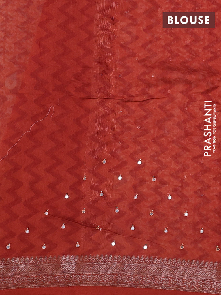 Chanderi silk cotton saree rust shade and beige with allover zari buttas & prints and printed butta border