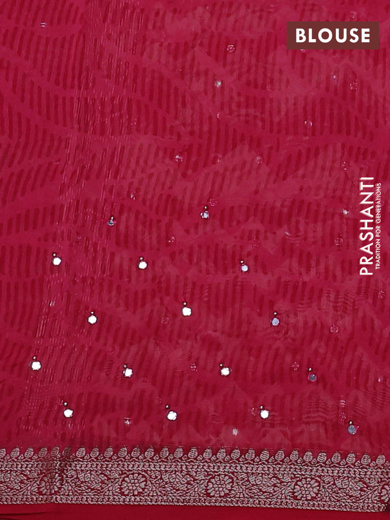 Chanderi silk cotton saree red with allover geometric prints & mirror work and woven border