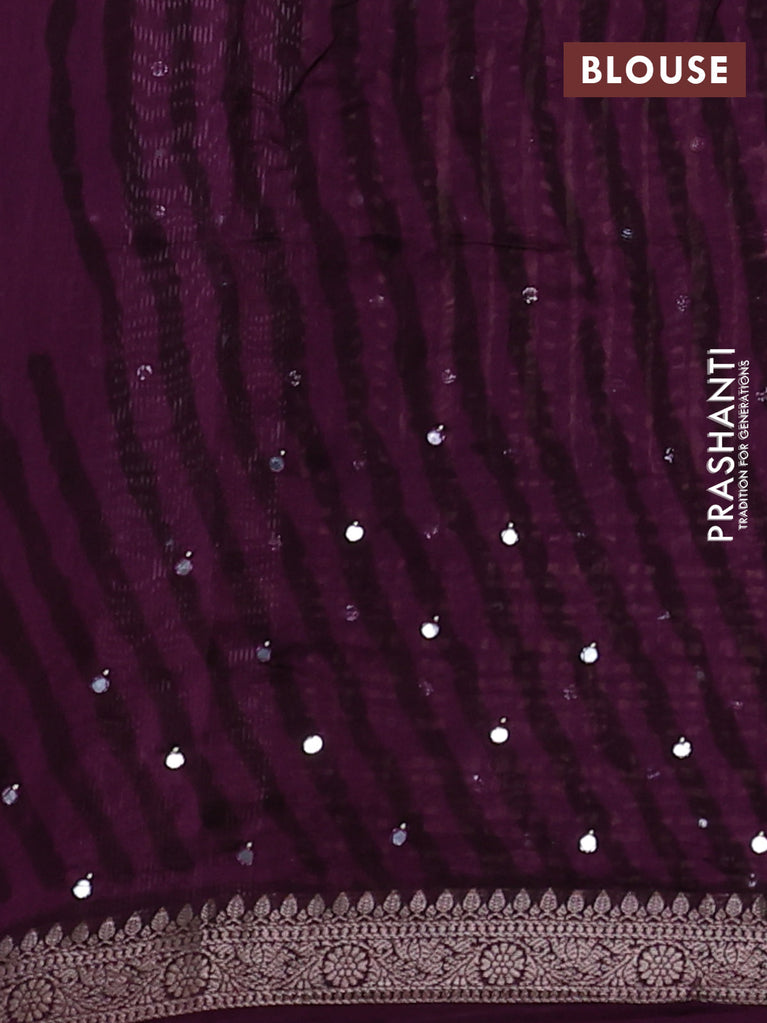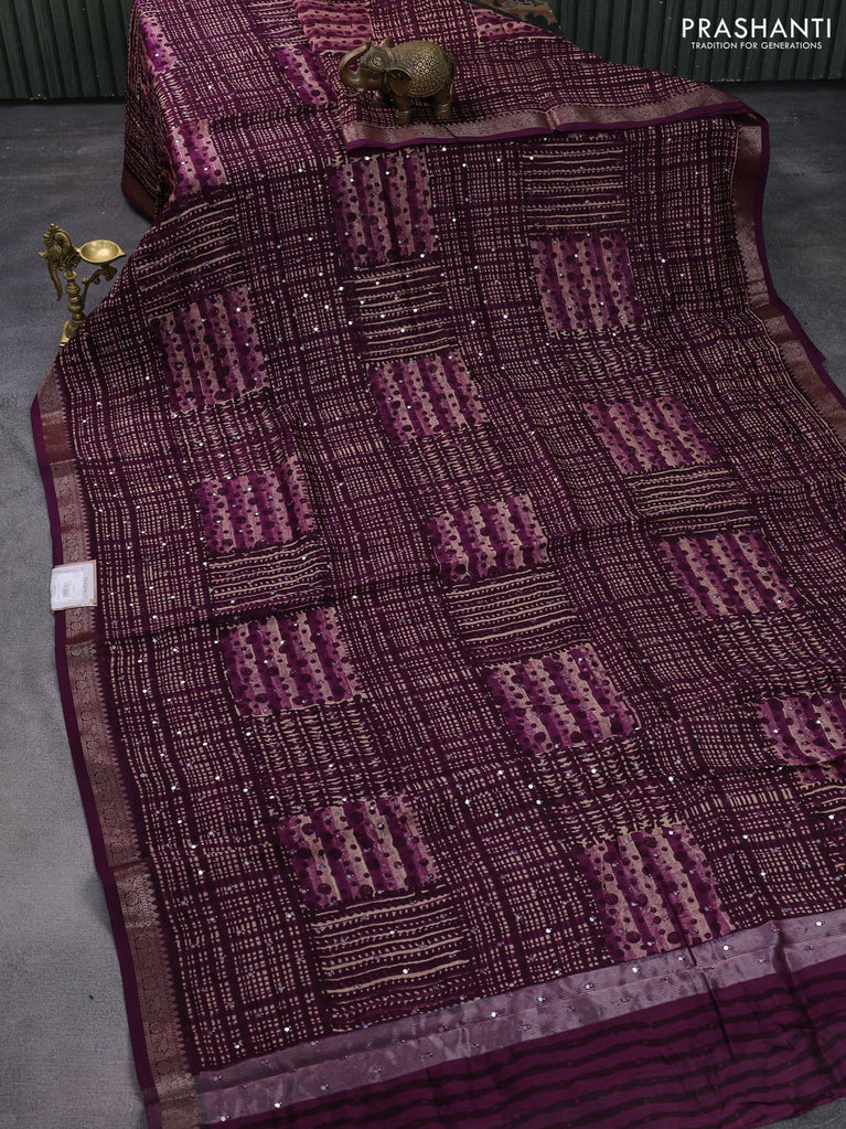 Chanderi silk cotton saree purple with allover geometric prints & mirror work and woven border
