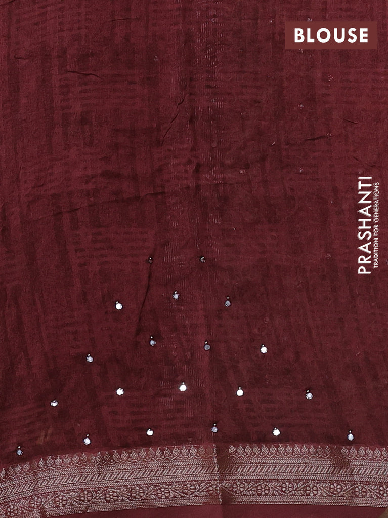 Chanderi silk cotton saree pastel maroon with allover prints & mirror work and woven border
