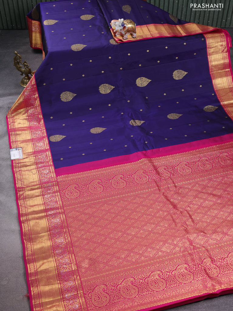 Pure gadwal silk saree dark blue and pink with zari woven buttas and long rich zari woven korvai border