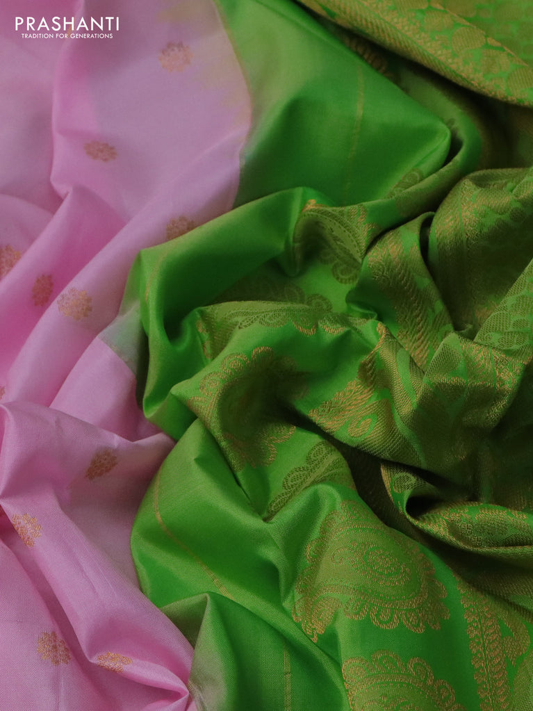 Pure gadwal silk saree green and pink with zari woven buttas and long rich zari woven korvai border