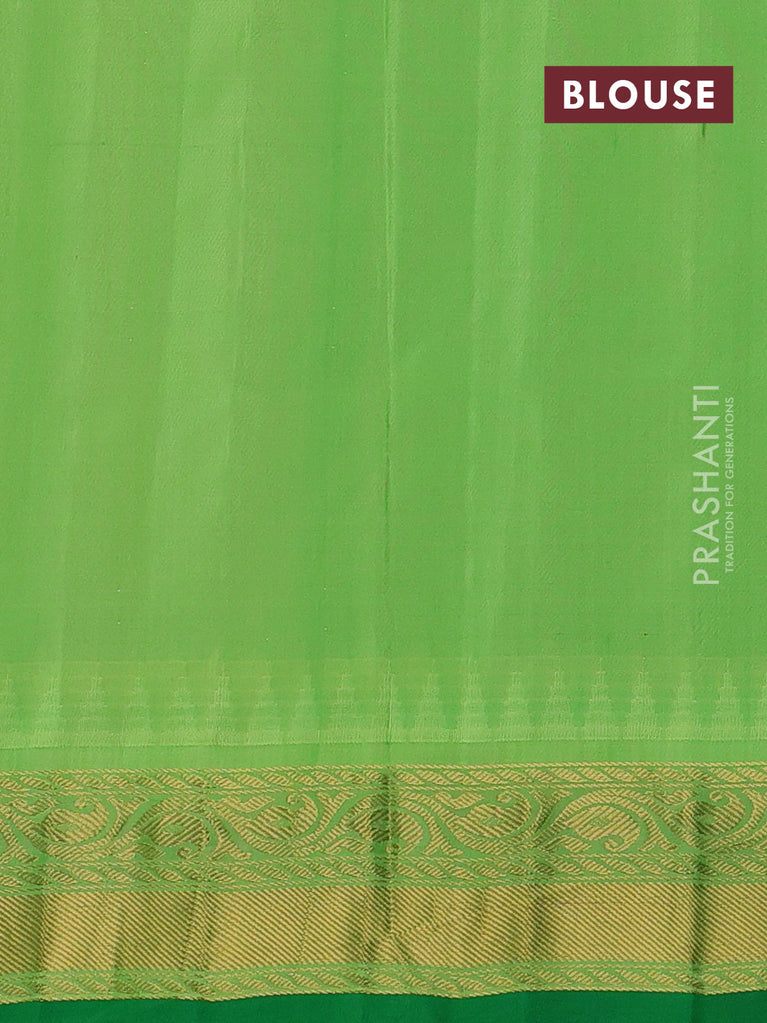 Pure gadwal silk saree light green and deep maroon with zari woven buttas and temple design zari woven korvai border