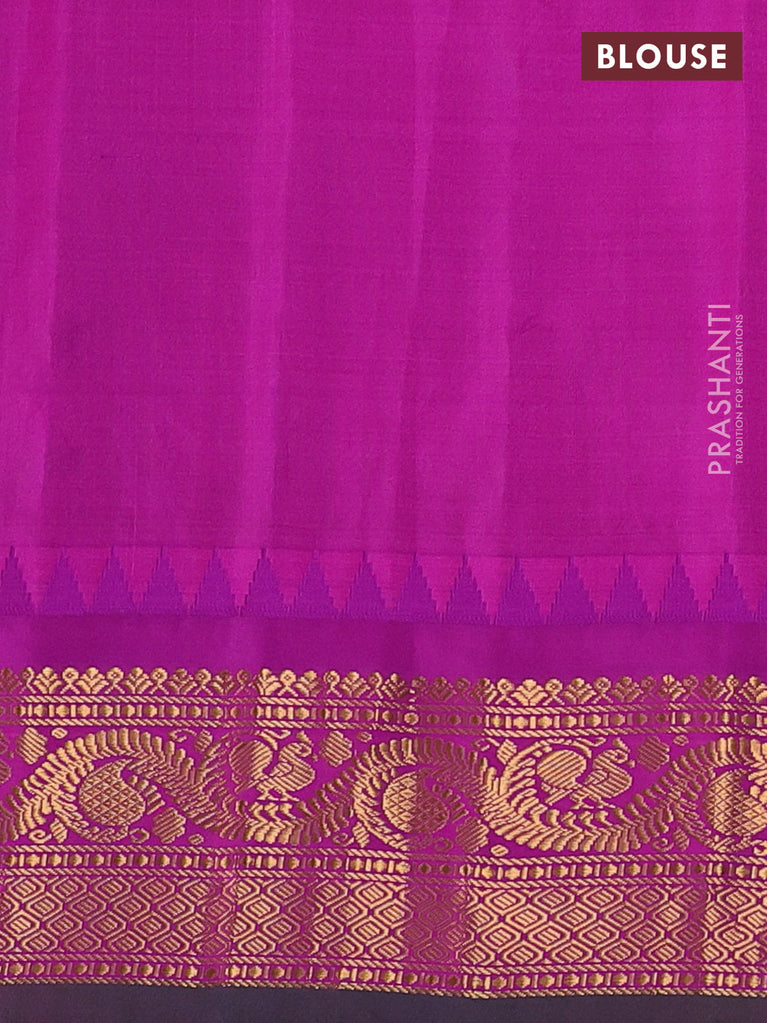 Pure gadwal silk saree lavender shade and dual shade of pinkish orange with annam zari woven buttas and temple design zari woven border