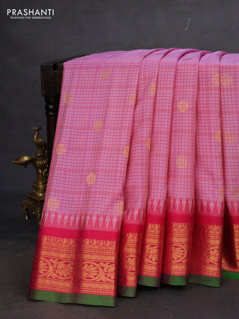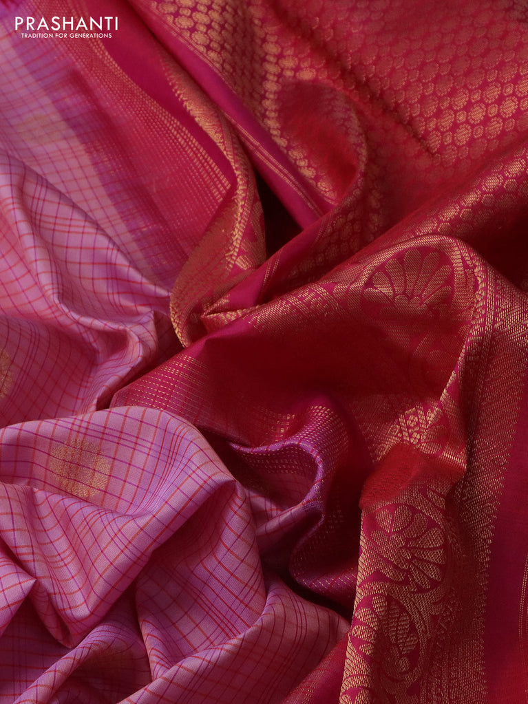 Pure gadwal silk saree dual shade of mild lavender and pink with allover checks & zari buttas and temple design zari woven korvai border