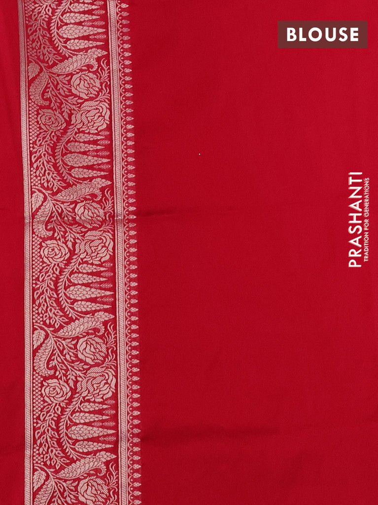 Banarasi semi katan saree red with silver & gold zari woven buttas and rich zari woven border