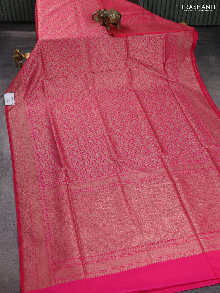Banarasi semi katan saree pink with allover thread & zari woven brocade weaves and woven border