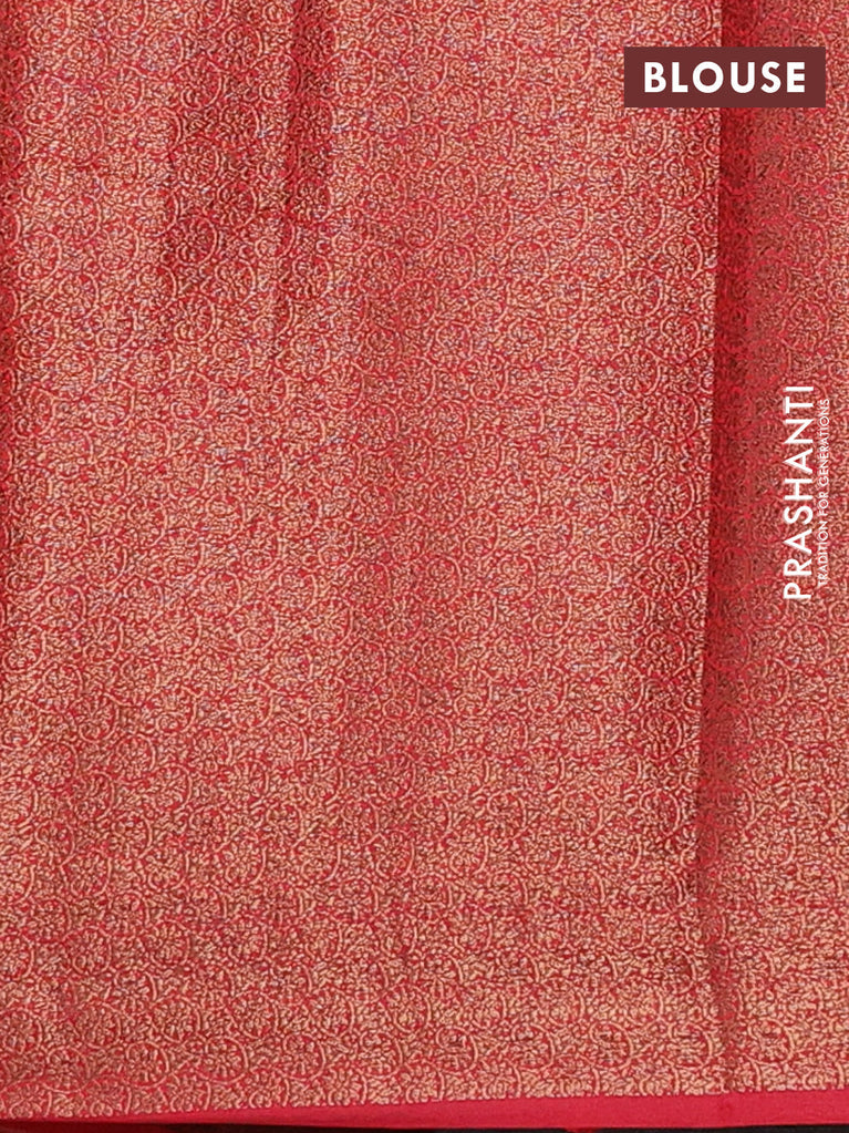 Banarasi semi matka saree red and green with thread & zari woven buttas and banarasi style border