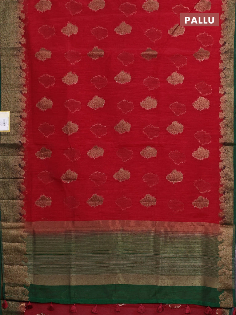 Banarasi semi matka saree red and green with thread & zari woven floral buttas and banarastyle border