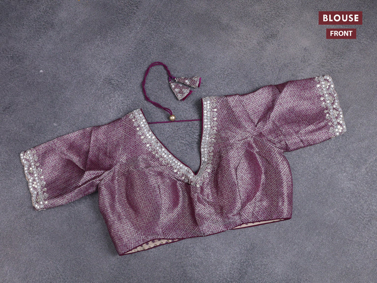Banarasi silk saree purple with allover zari woven brocade weaves and embroidery mirror work border