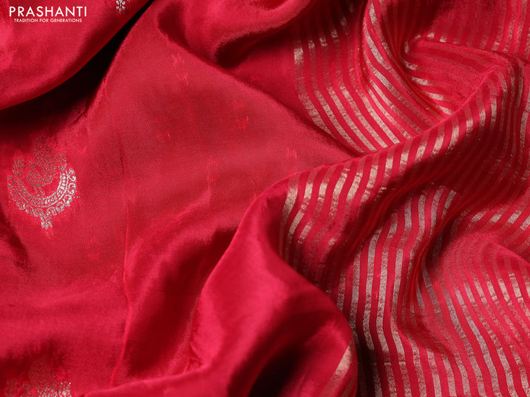Banarasi silk saree red with allover silver zari woven brocade weaves and silver zari woven border
