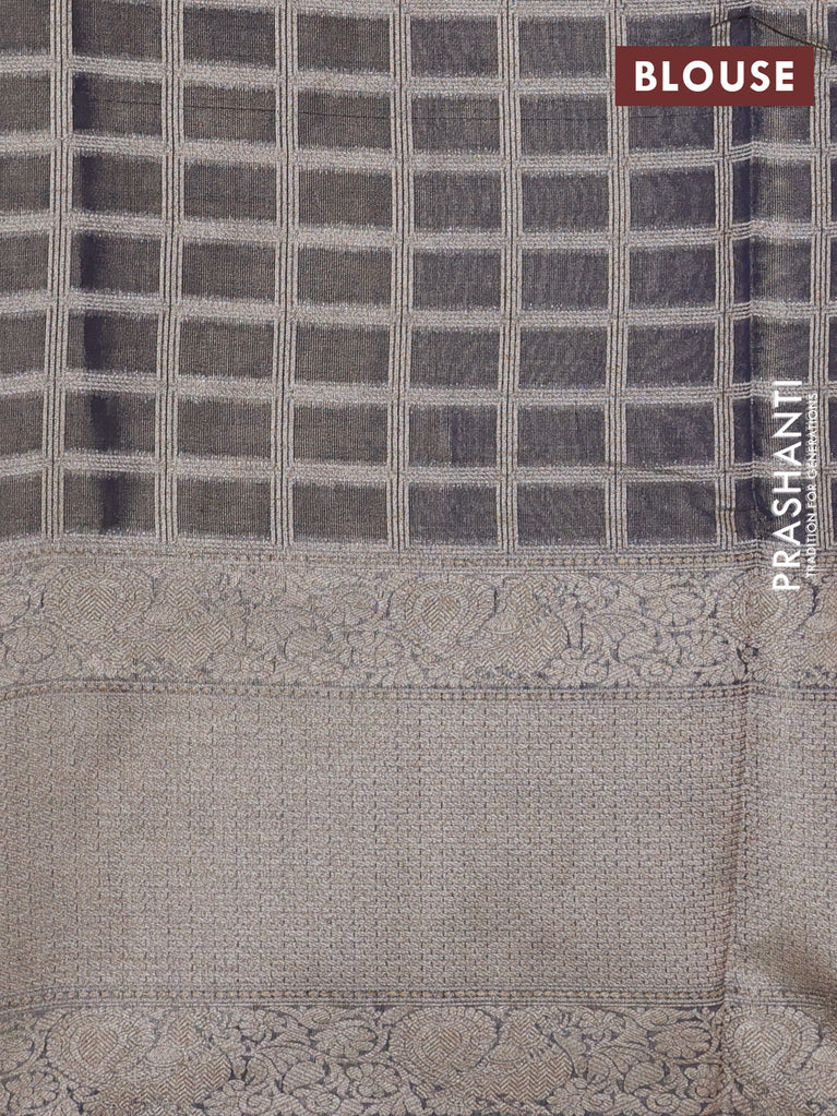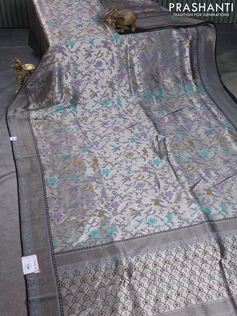 Banarasi tissue silk saree black with allover thread woven floral weaves and silver zari woven border