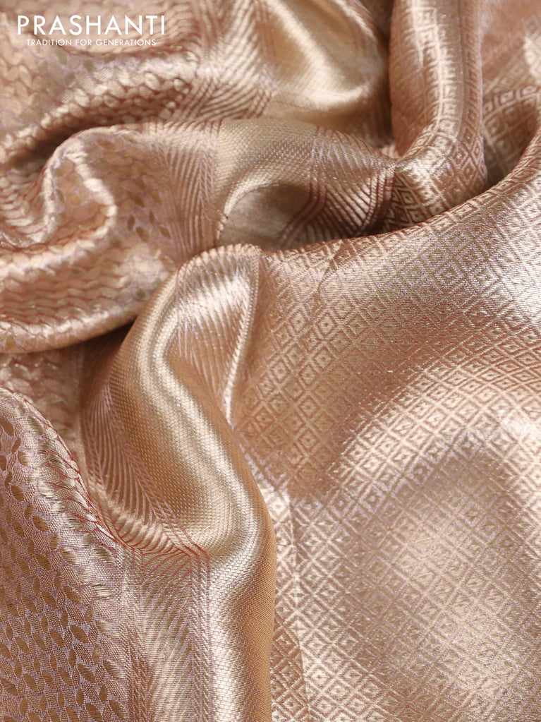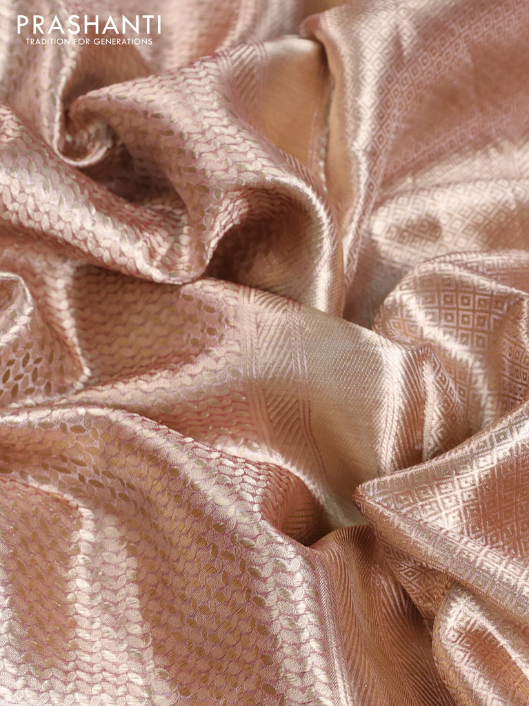 Banarasi tissue silk saree pastel brown with allover zari woven brocade weaves and zari woven border