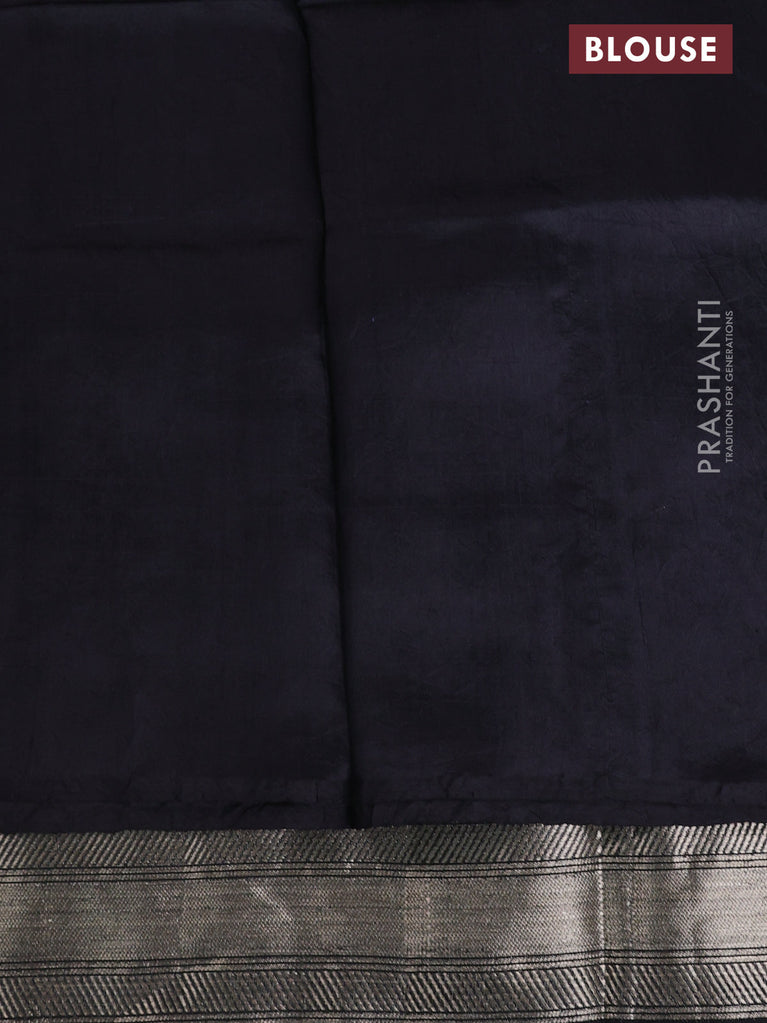 Banarasi tissue silk saree navy blue with allover thread woven floral weaves and silver zari woven border